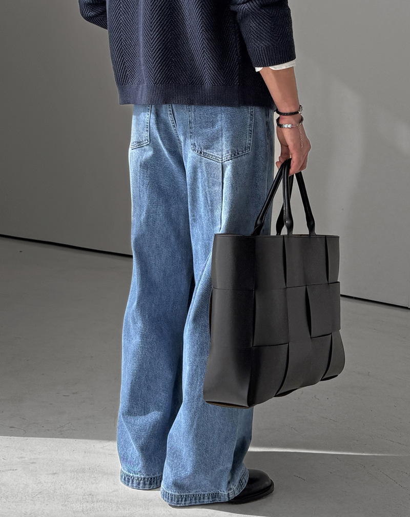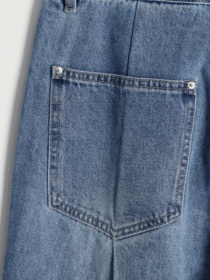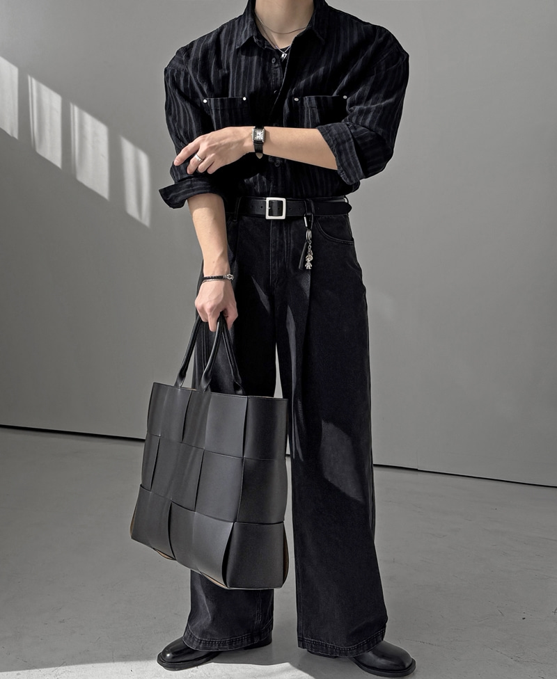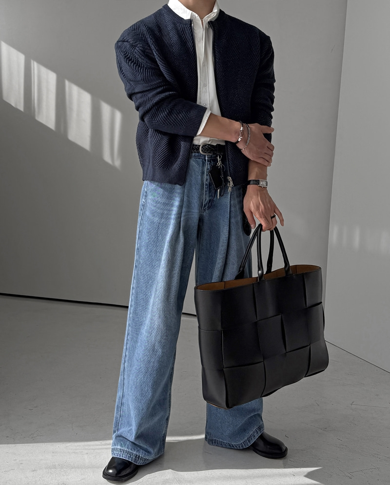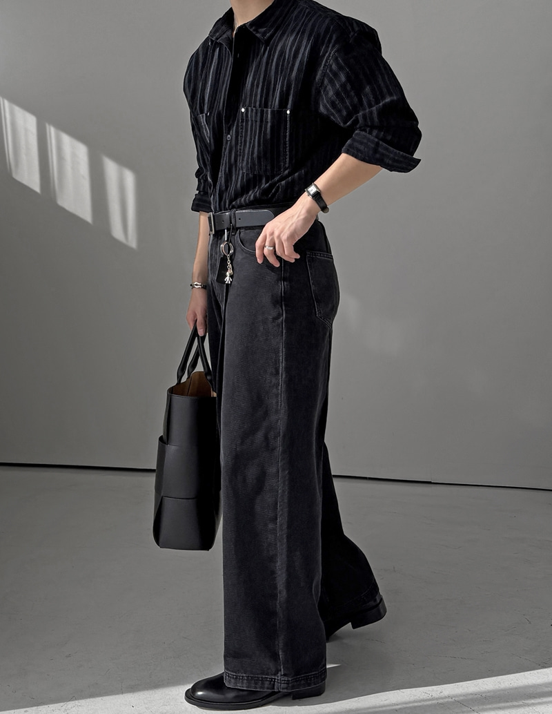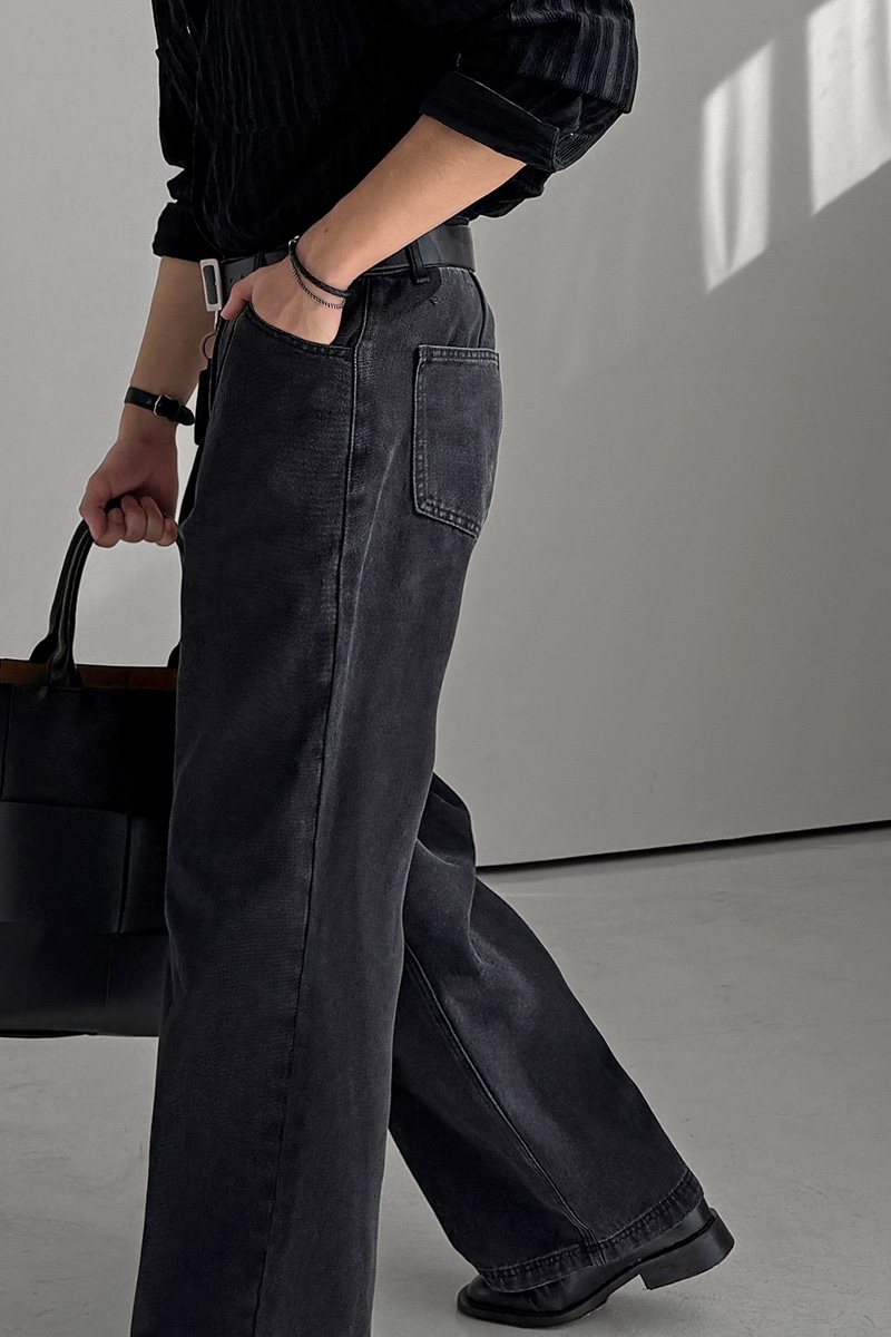 日常堅挺水洗刷色褶襉牛仔寬褲 2色 1229