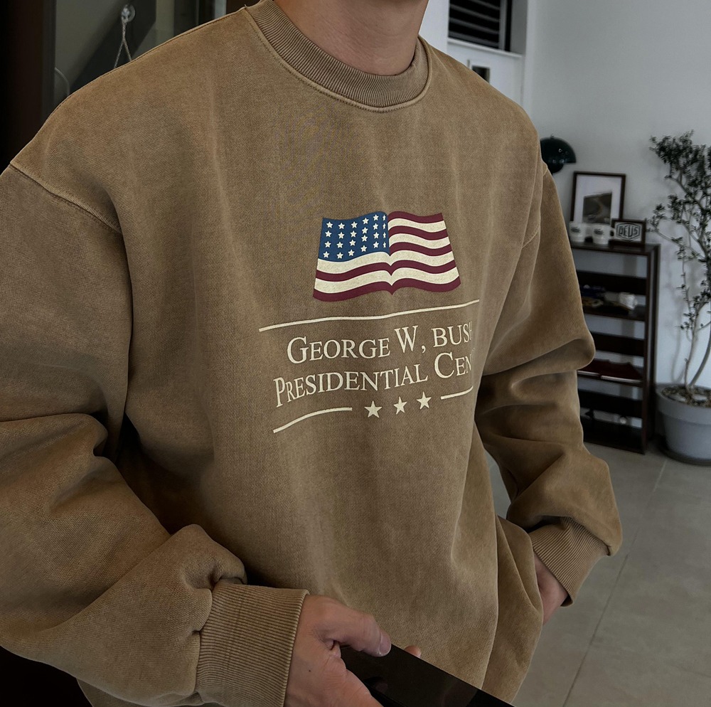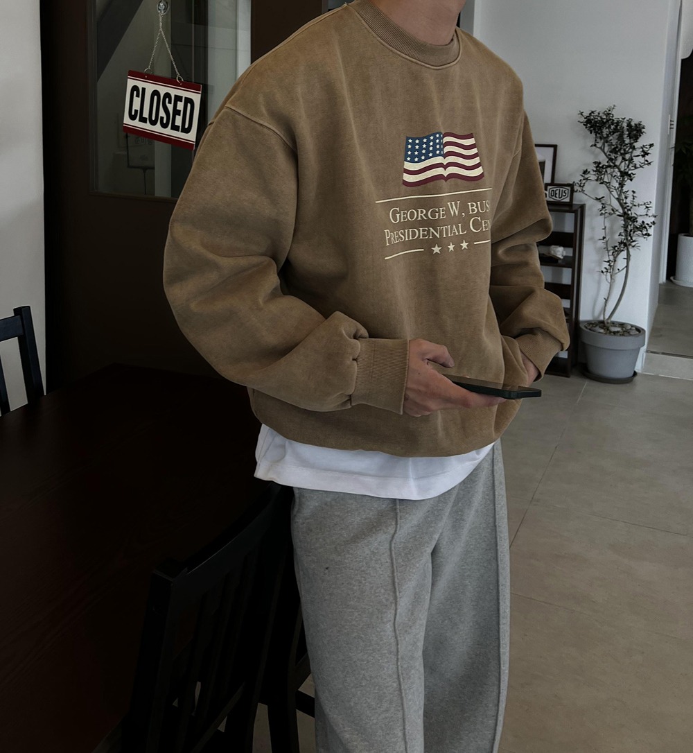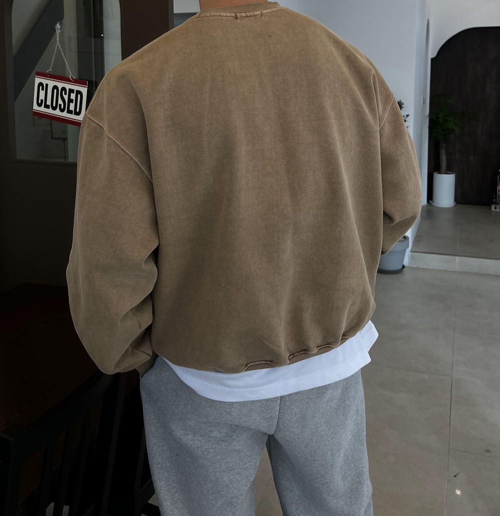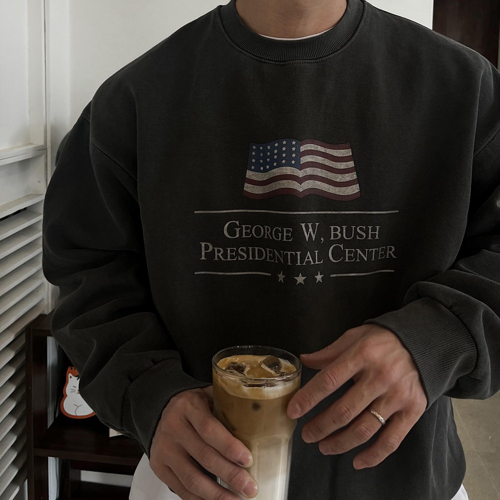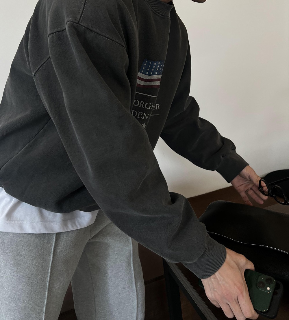 厚實美式復古水洗棉印花內抓絨大學T 4色 1222