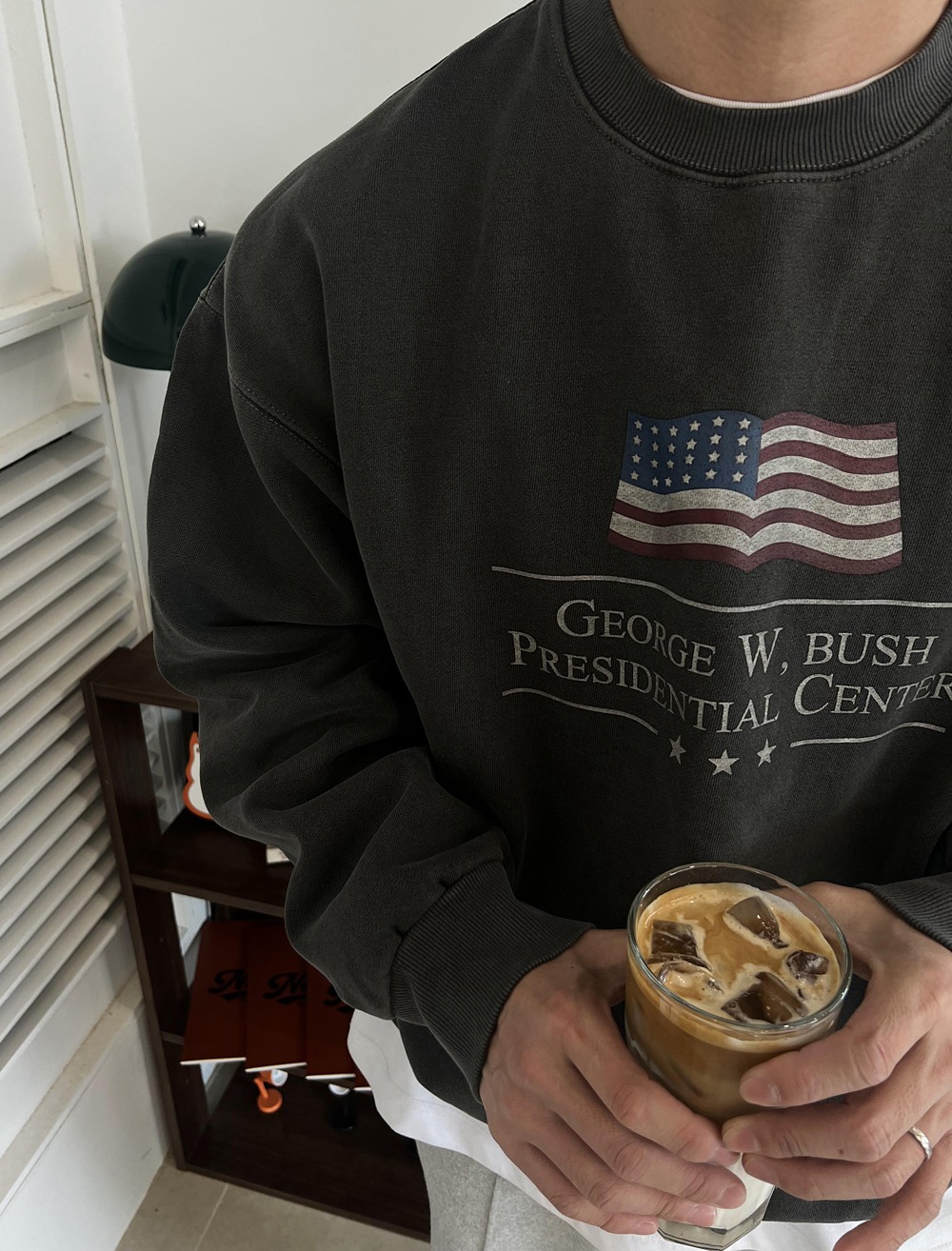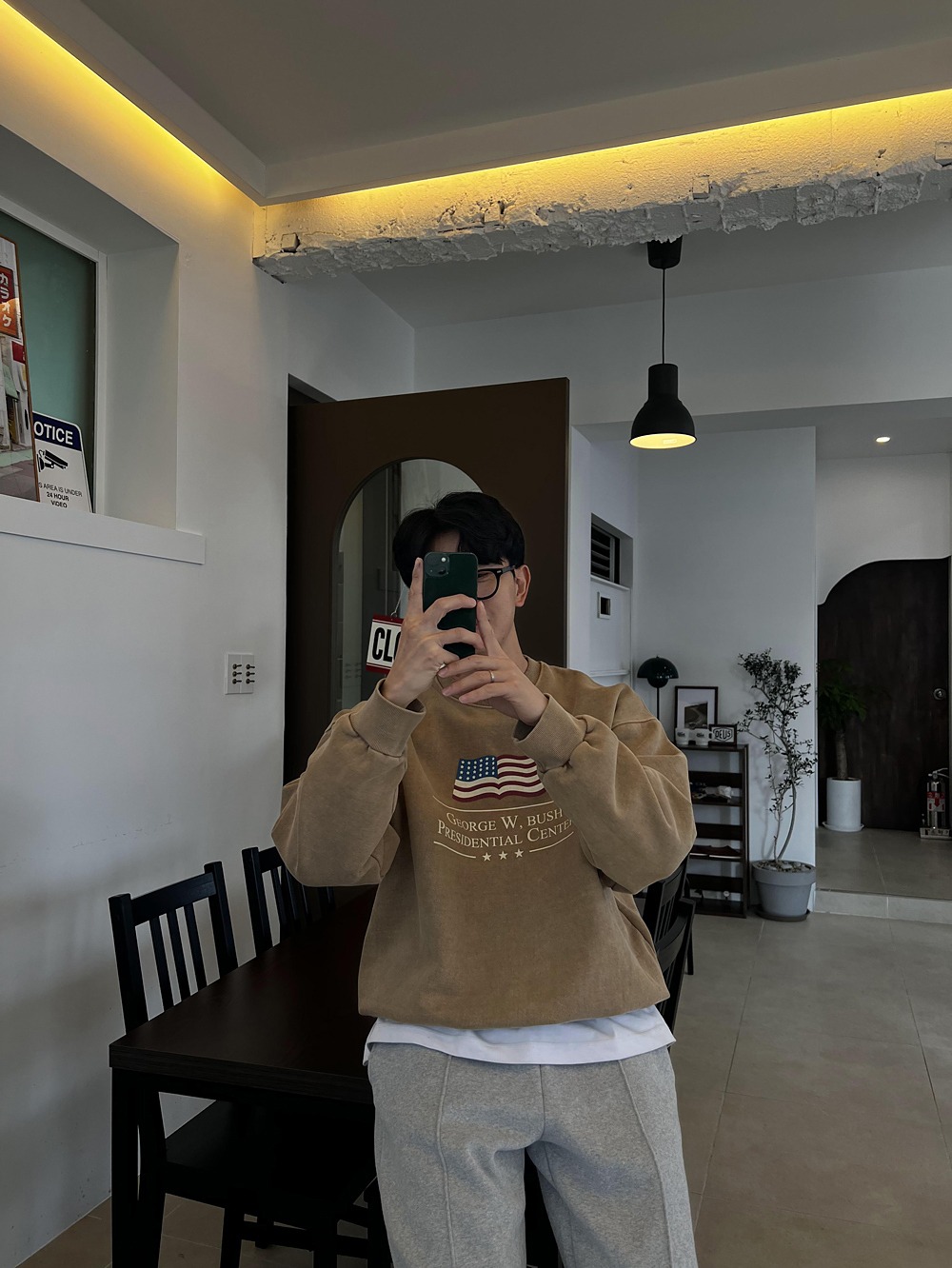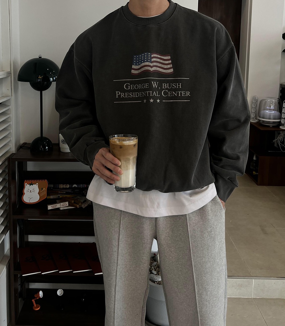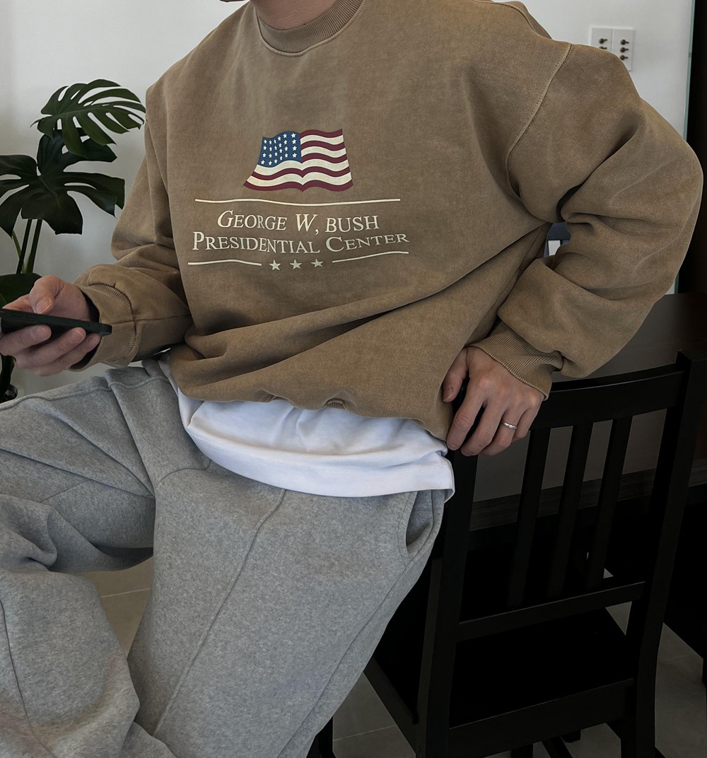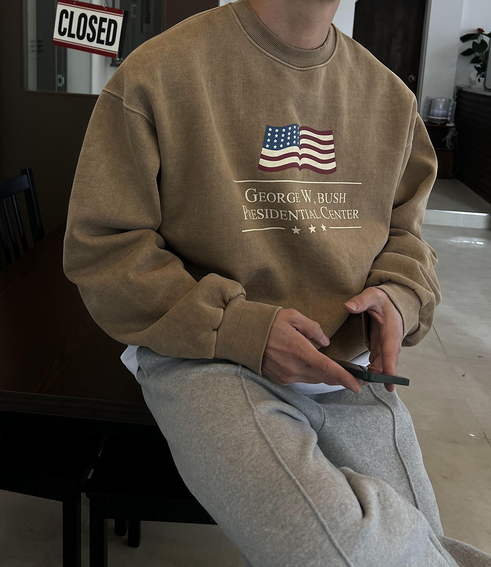 厚實美式復古水洗棉印花內抓絨大學T 4色 1222