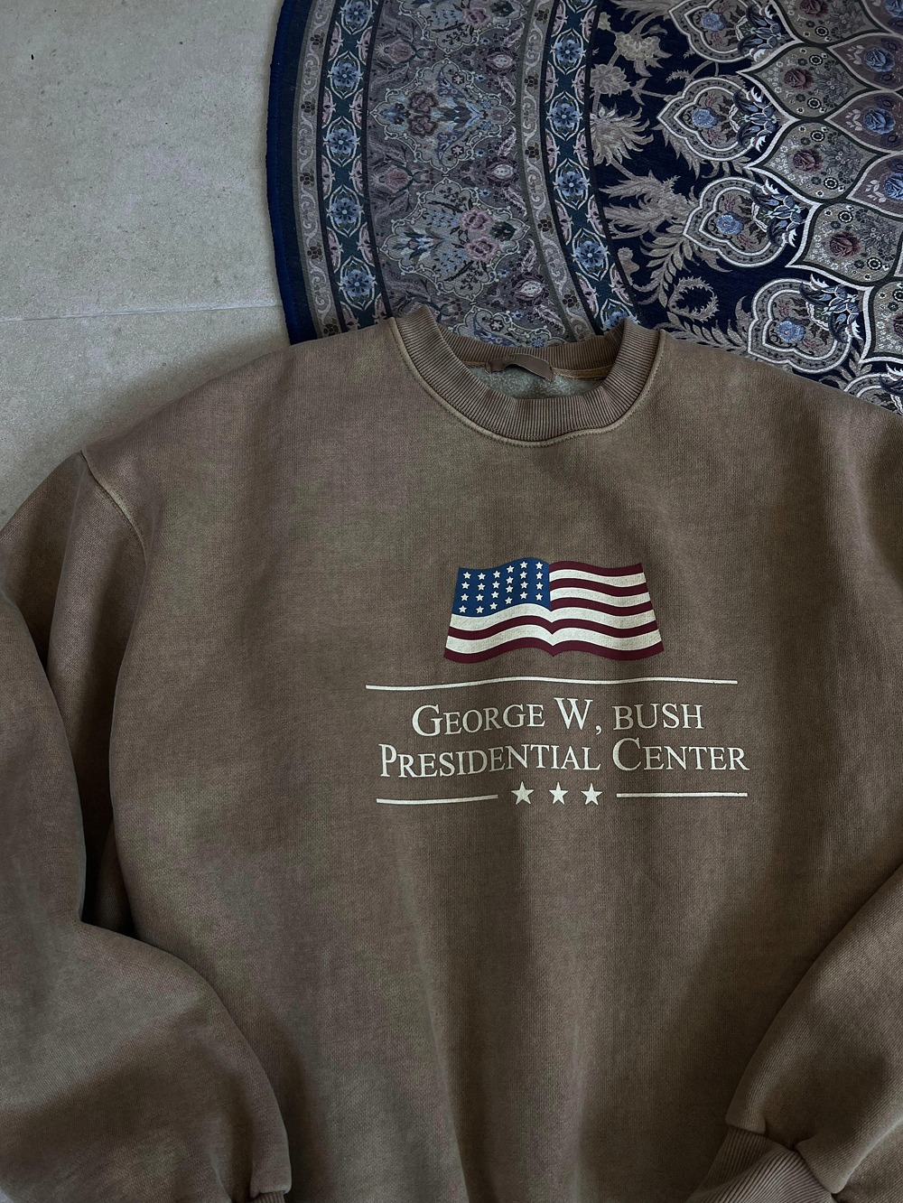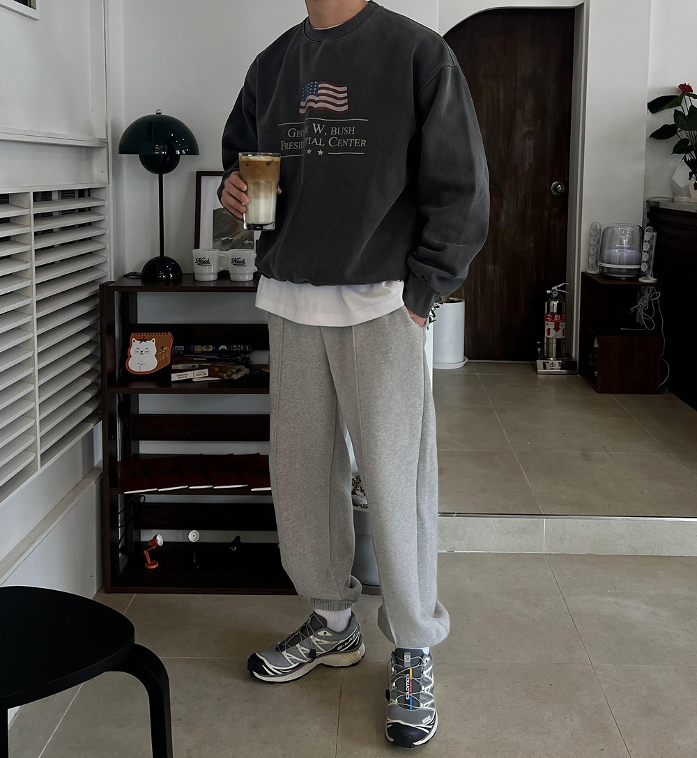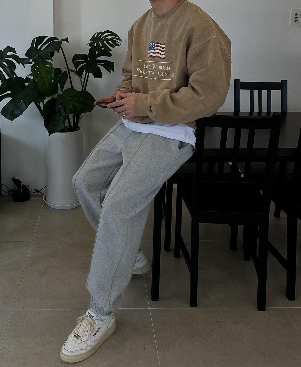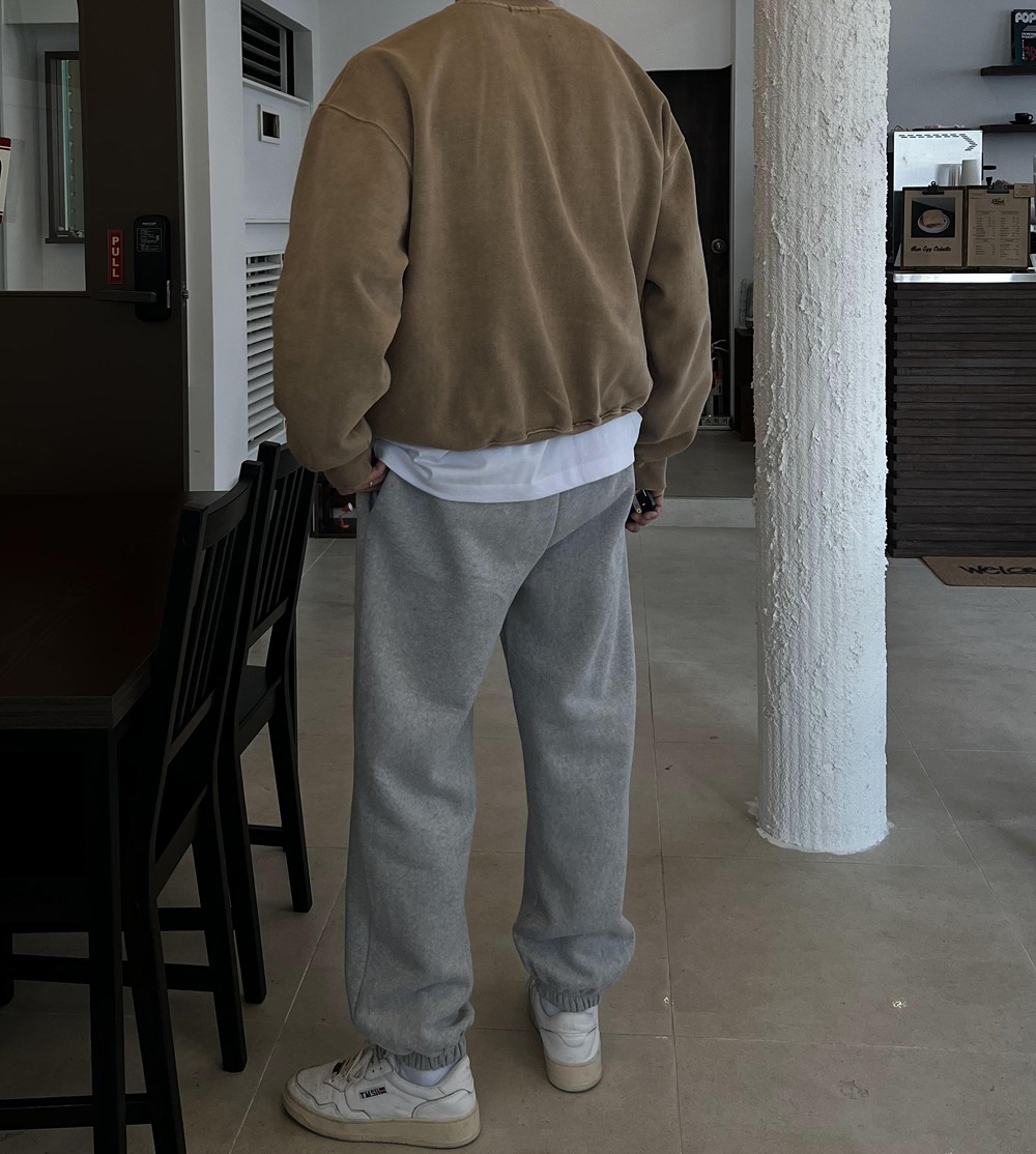 厚實美式復古水洗棉印花內抓絨大學T 4色 1222