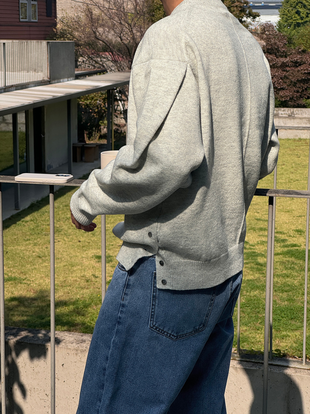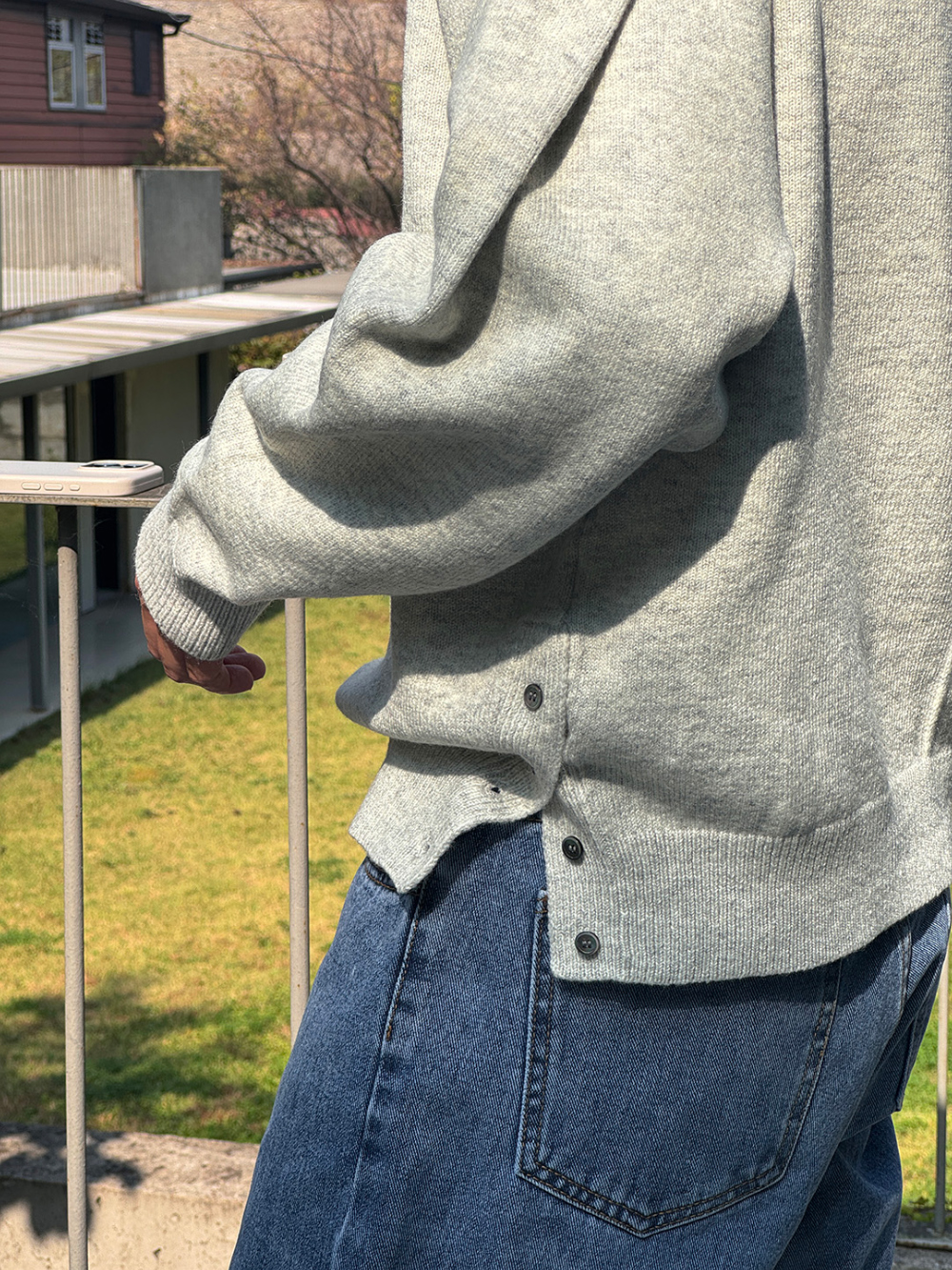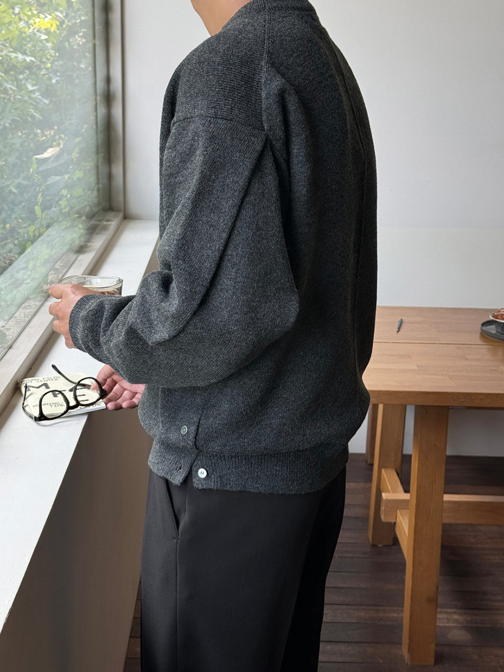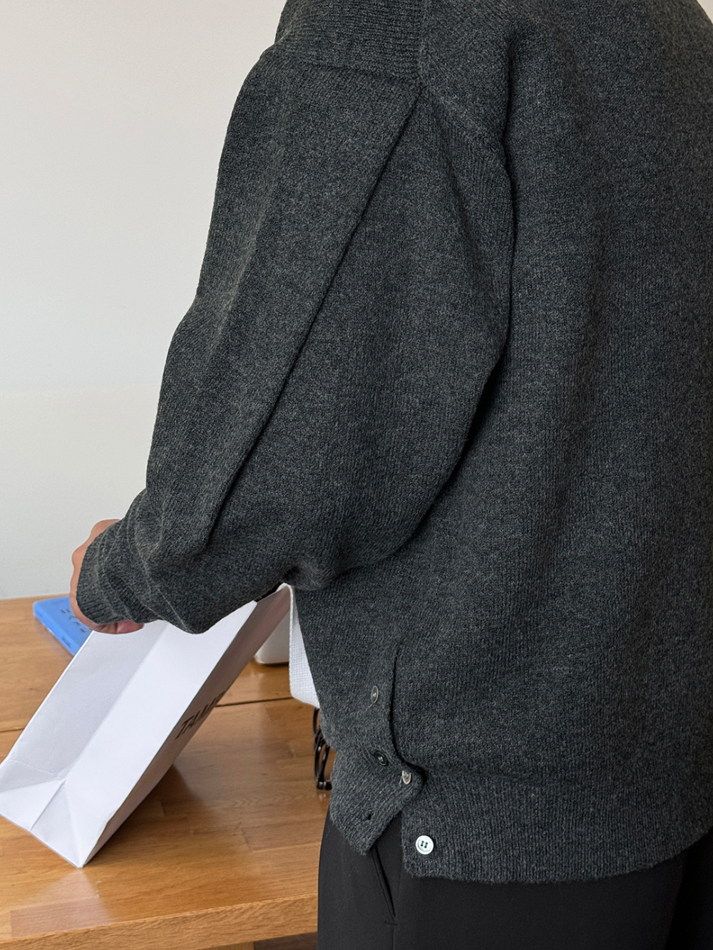 質感羊毛側開衩鈕扣褶襉針織上衣 4色 1215