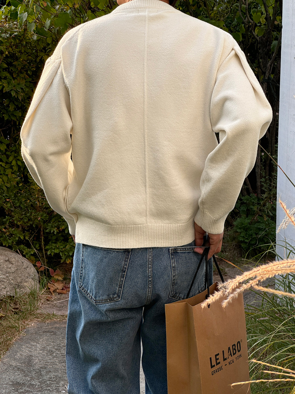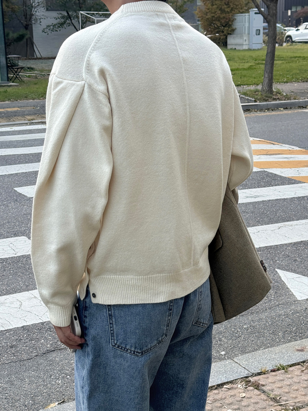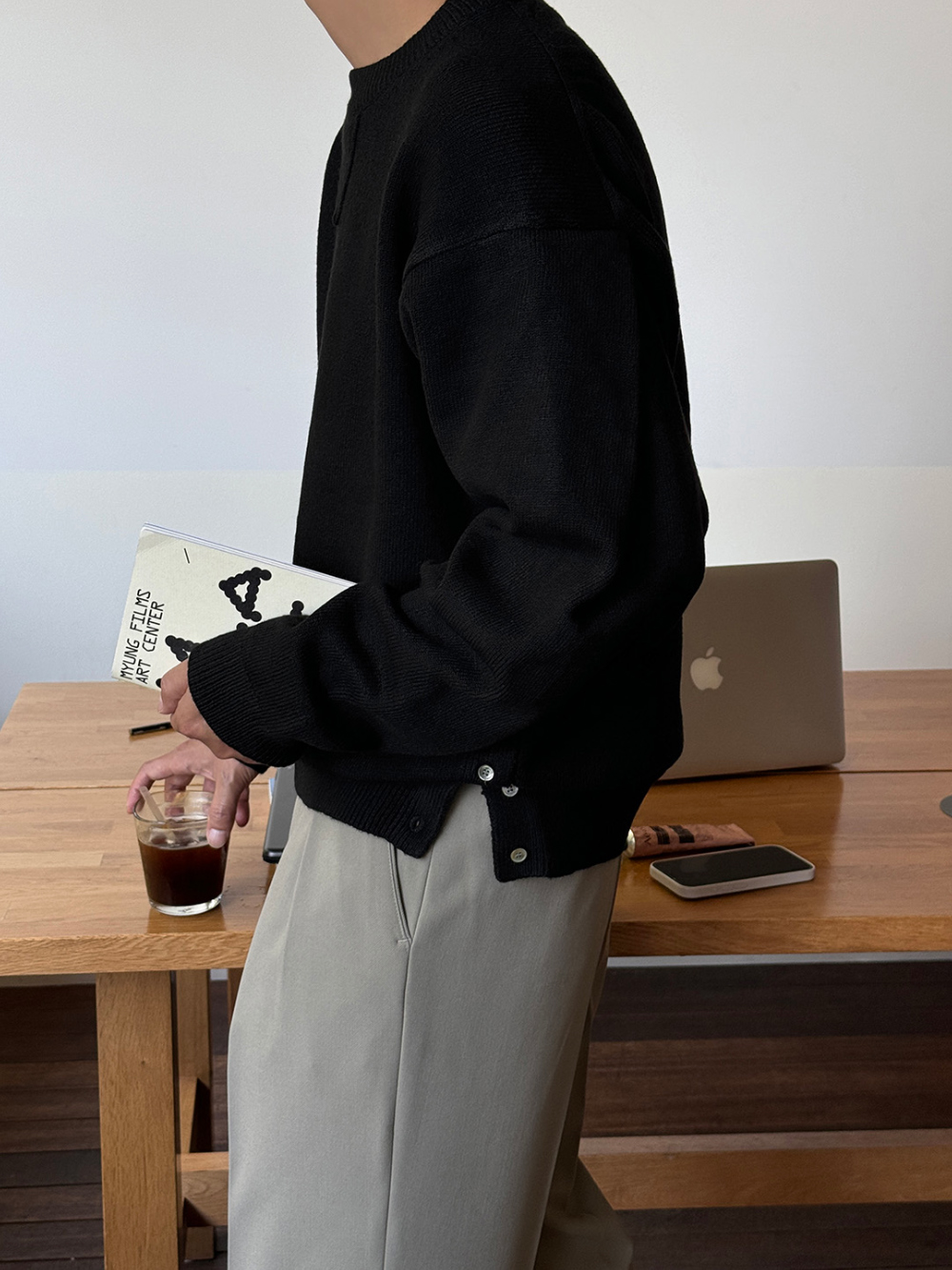 質感羊毛側開衩鈕扣褶襉針織上衣 4色 1215
