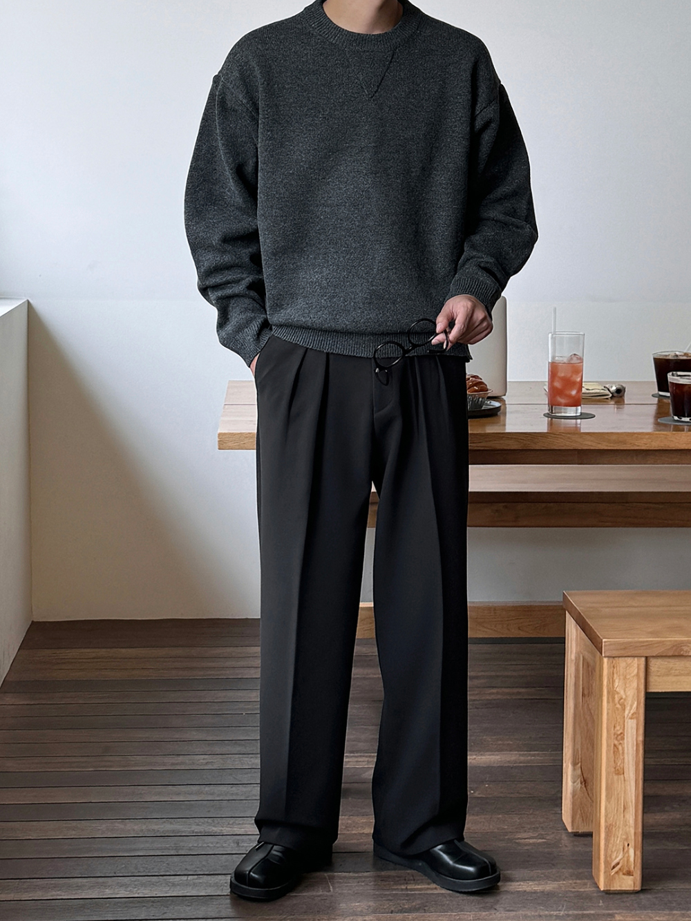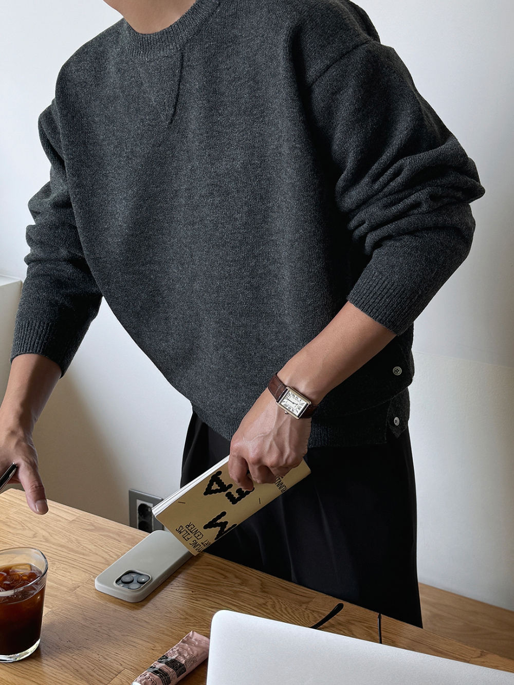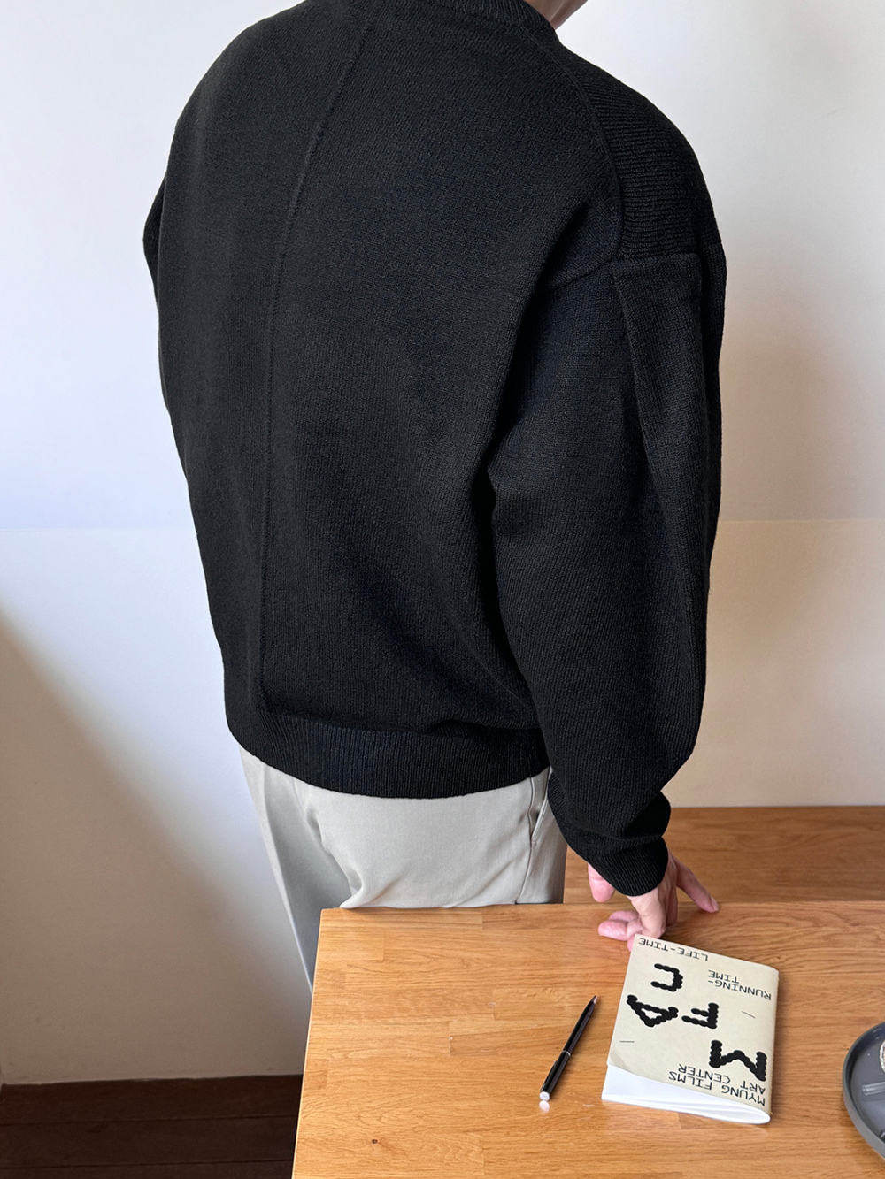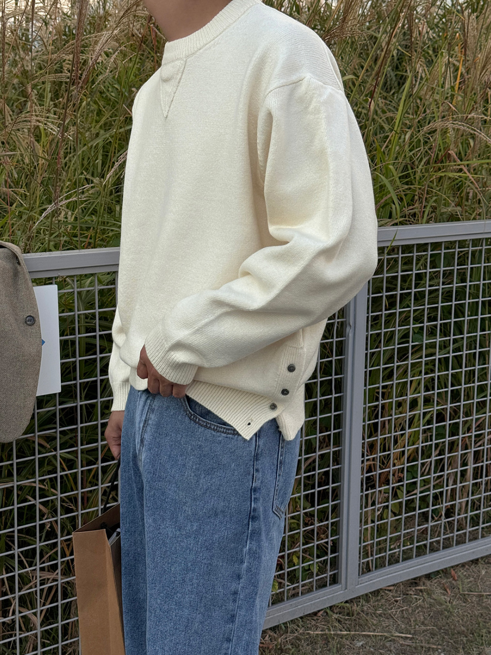 質感羊毛側開衩鈕扣褶襉針織上衣 4色 1215