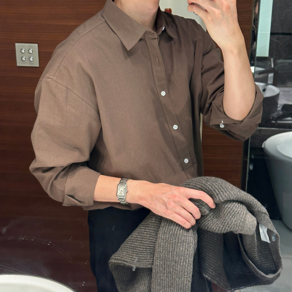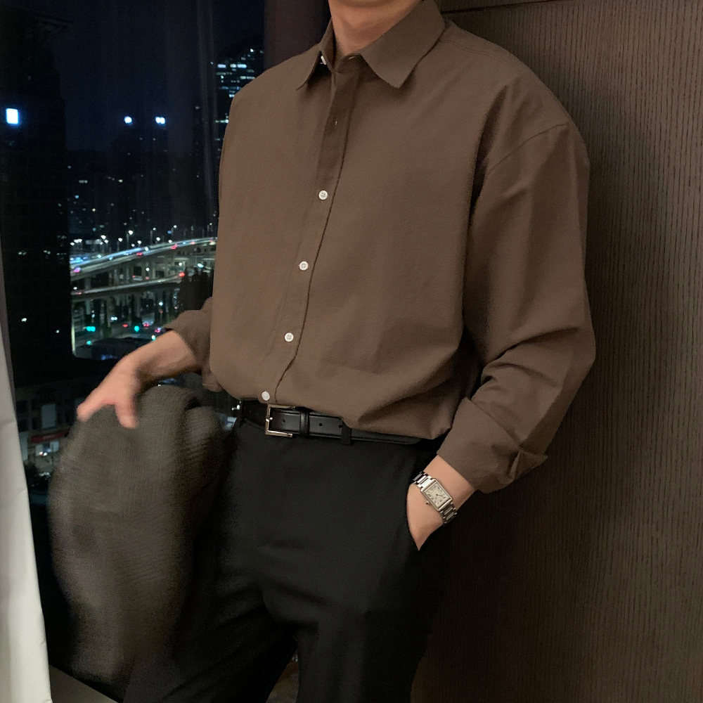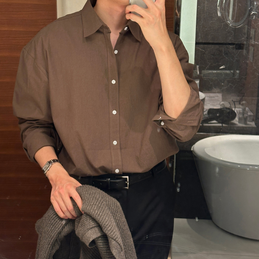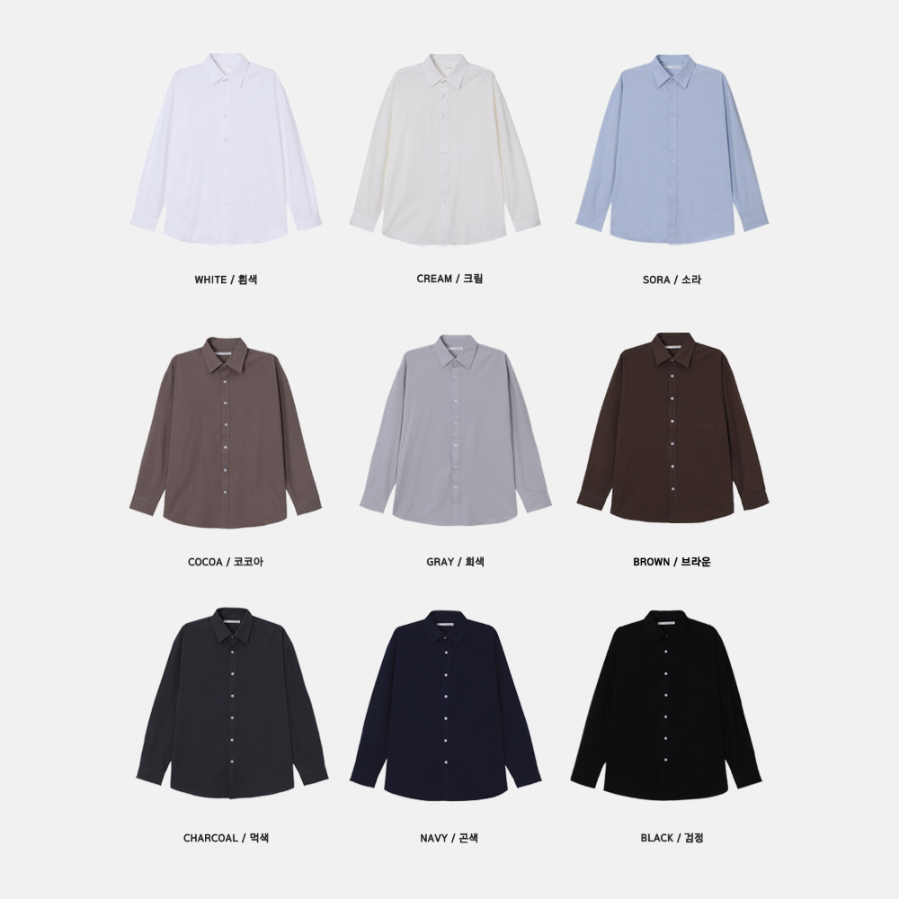 Unisex 基本款堅挺棉素色寬版長袖襯衫 9色 1124