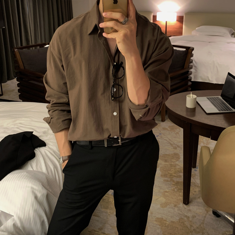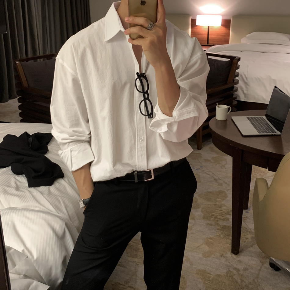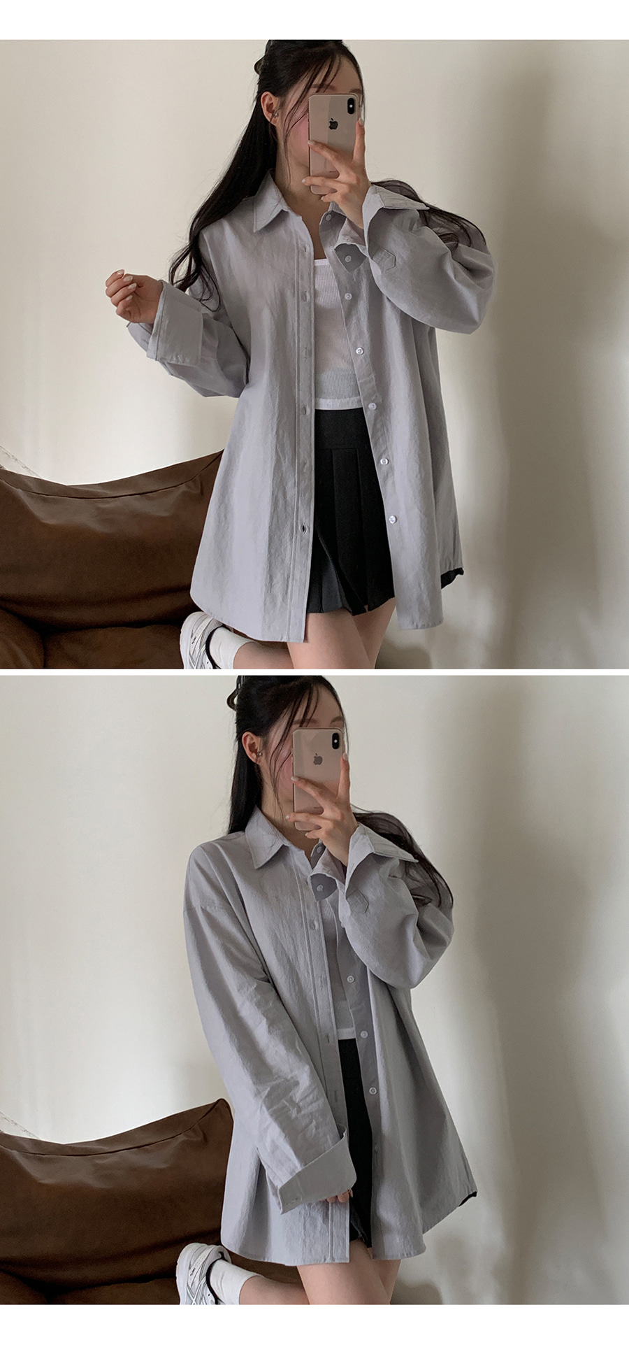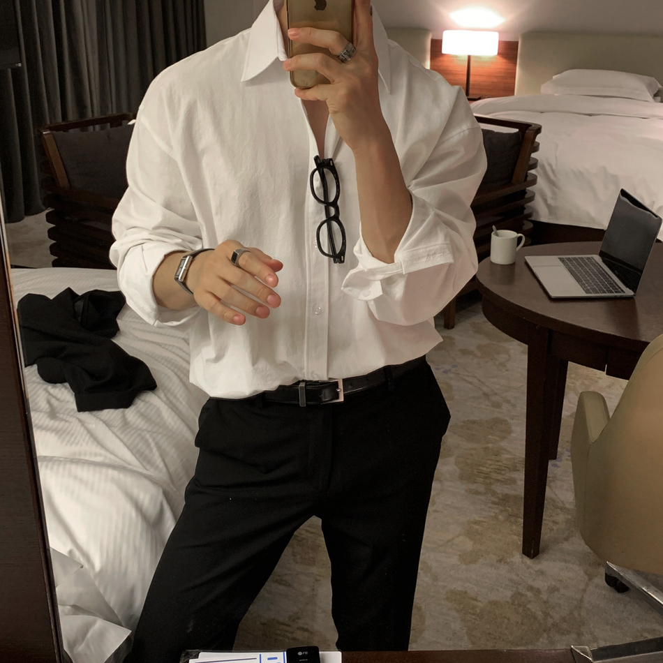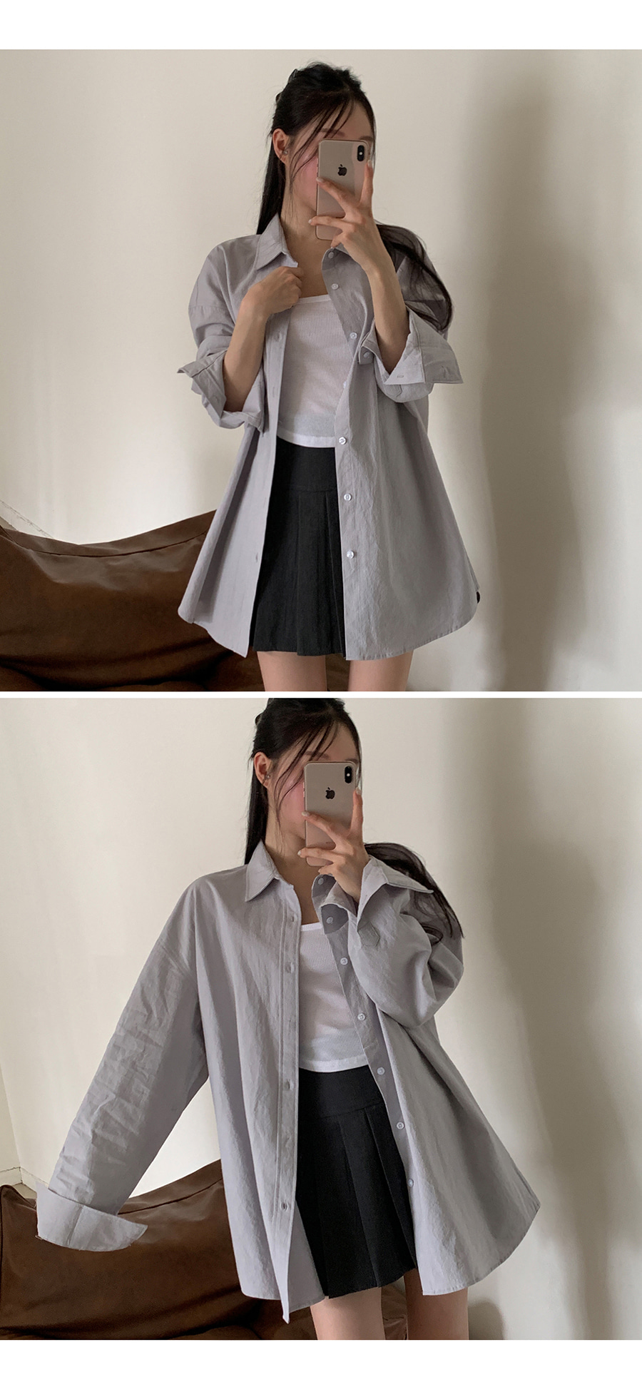 Unisex 基本款堅挺棉素色寬版長袖襯衫 9色 1124