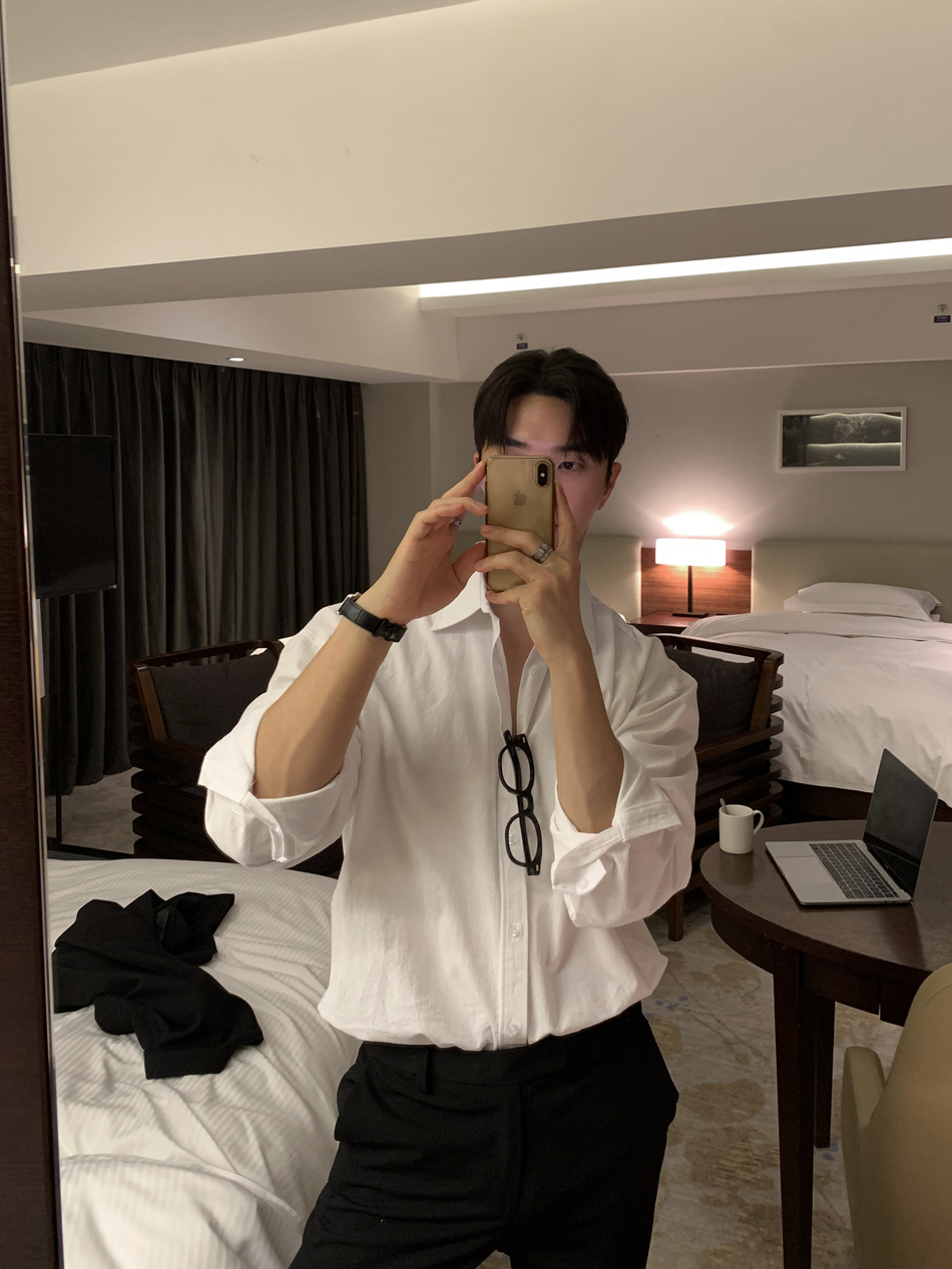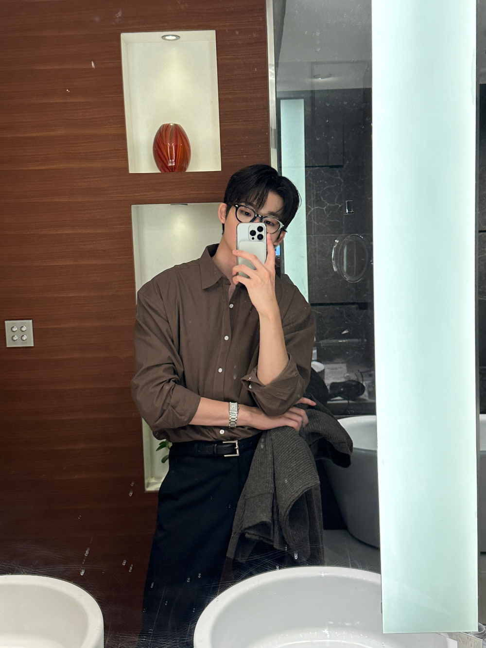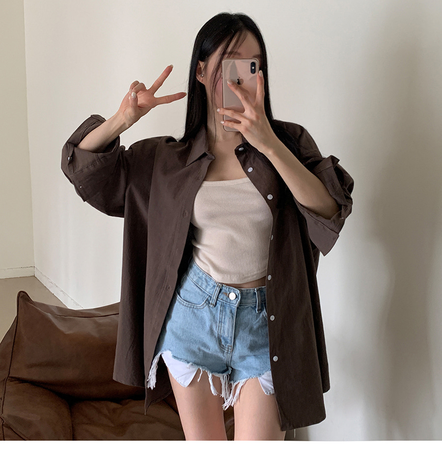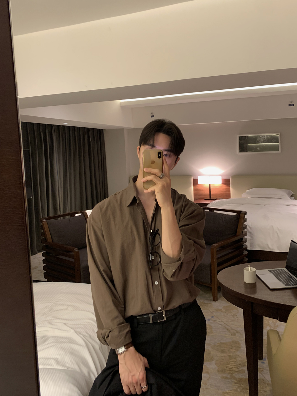 Unisex 基本款堅挺棉素色寬版長袖襯衫 9色 1124