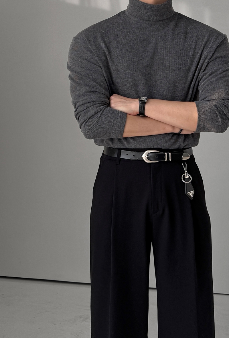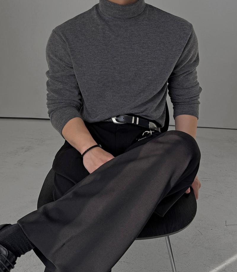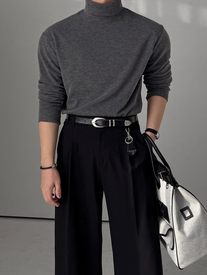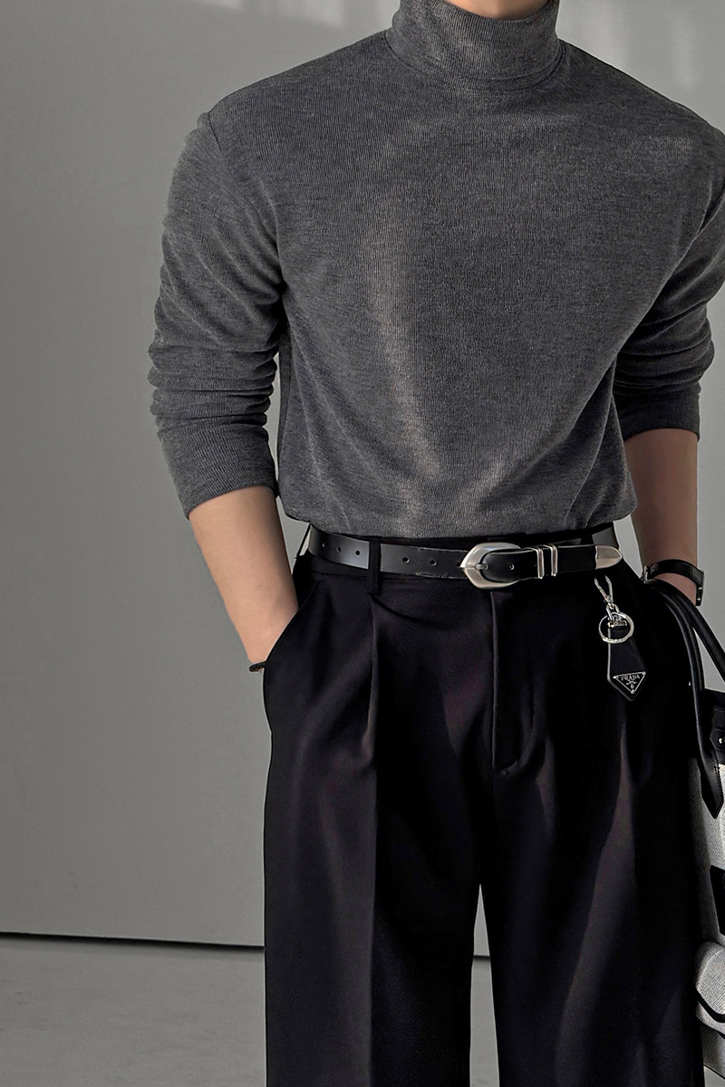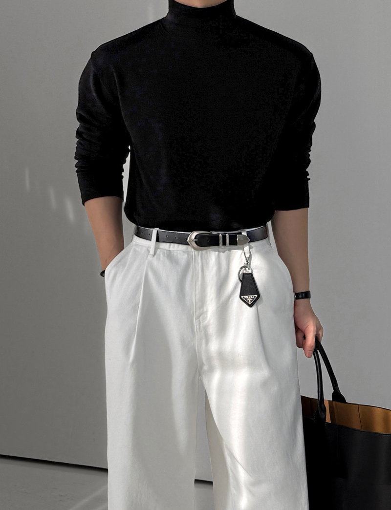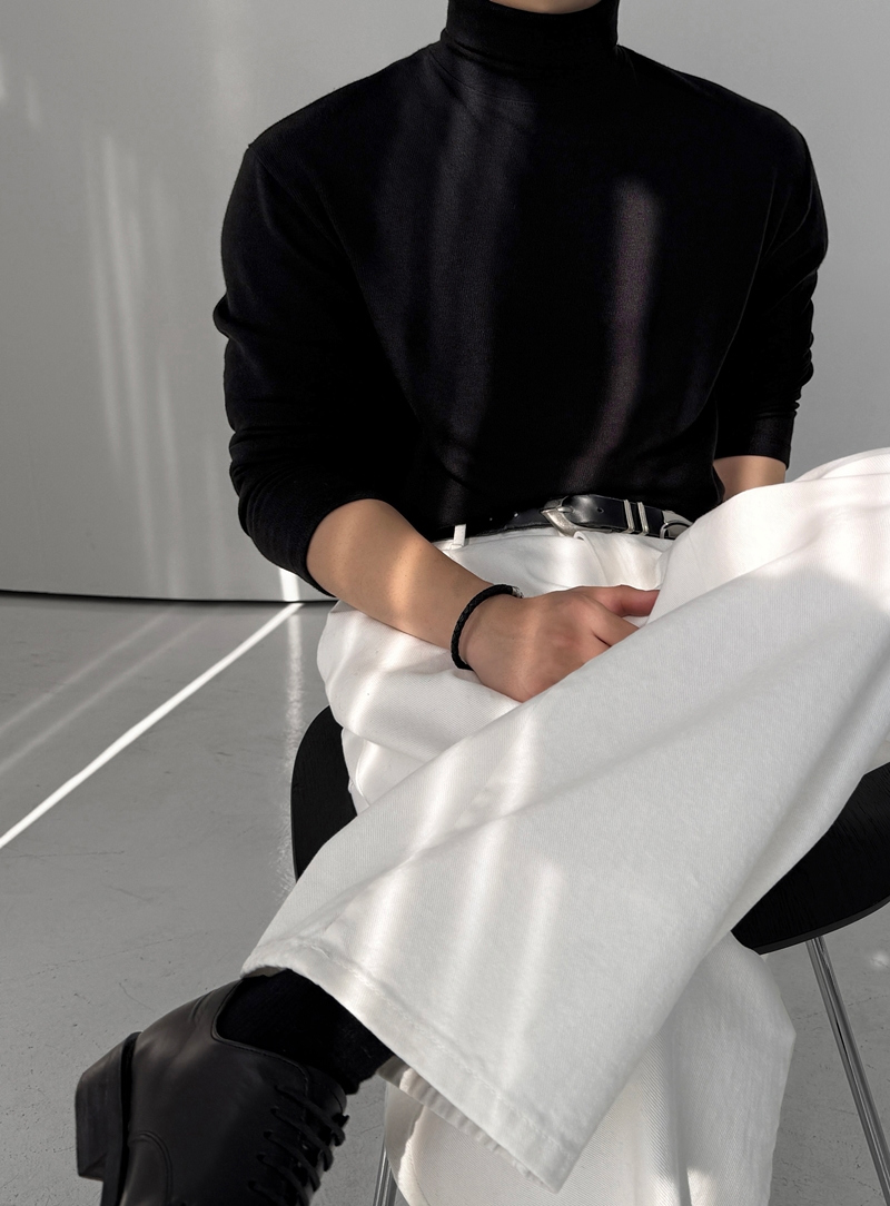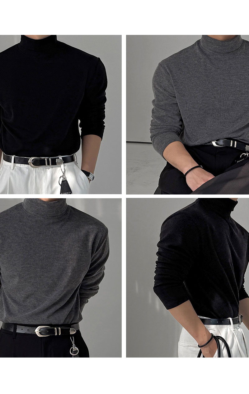 M-2XL 簡約羅紋彈力柔軟半寬高領長袖上衣 8色 0105