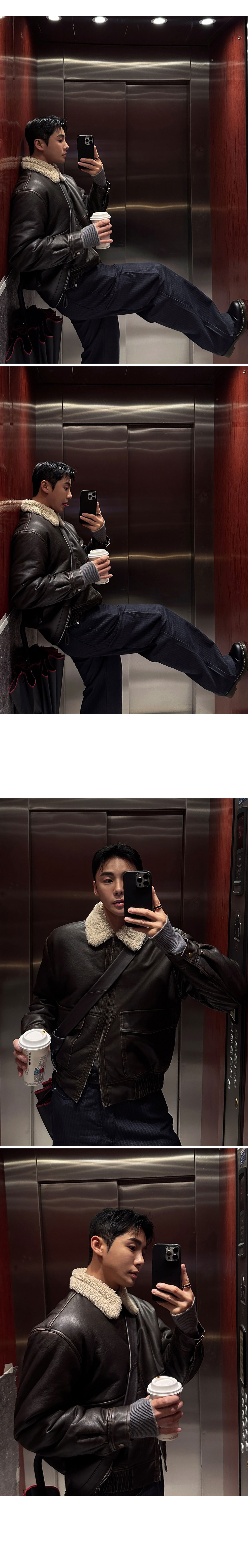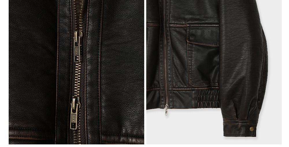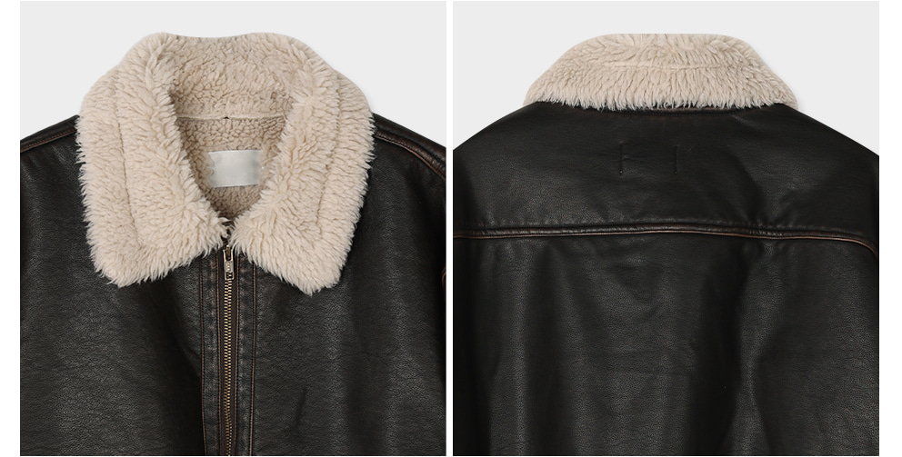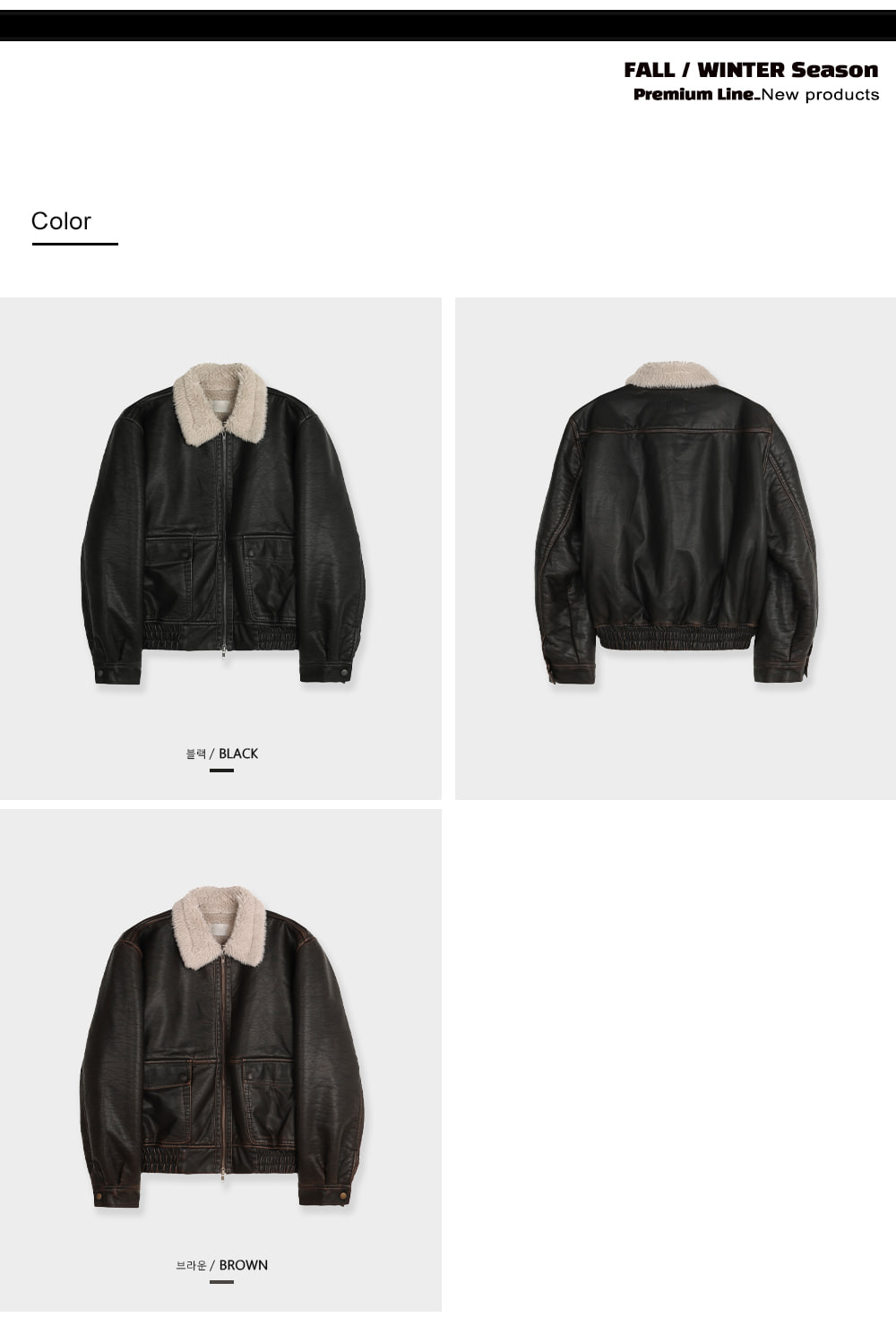 復古皮革內刷毛羊羔絨領短版夾克外套 2色 1124