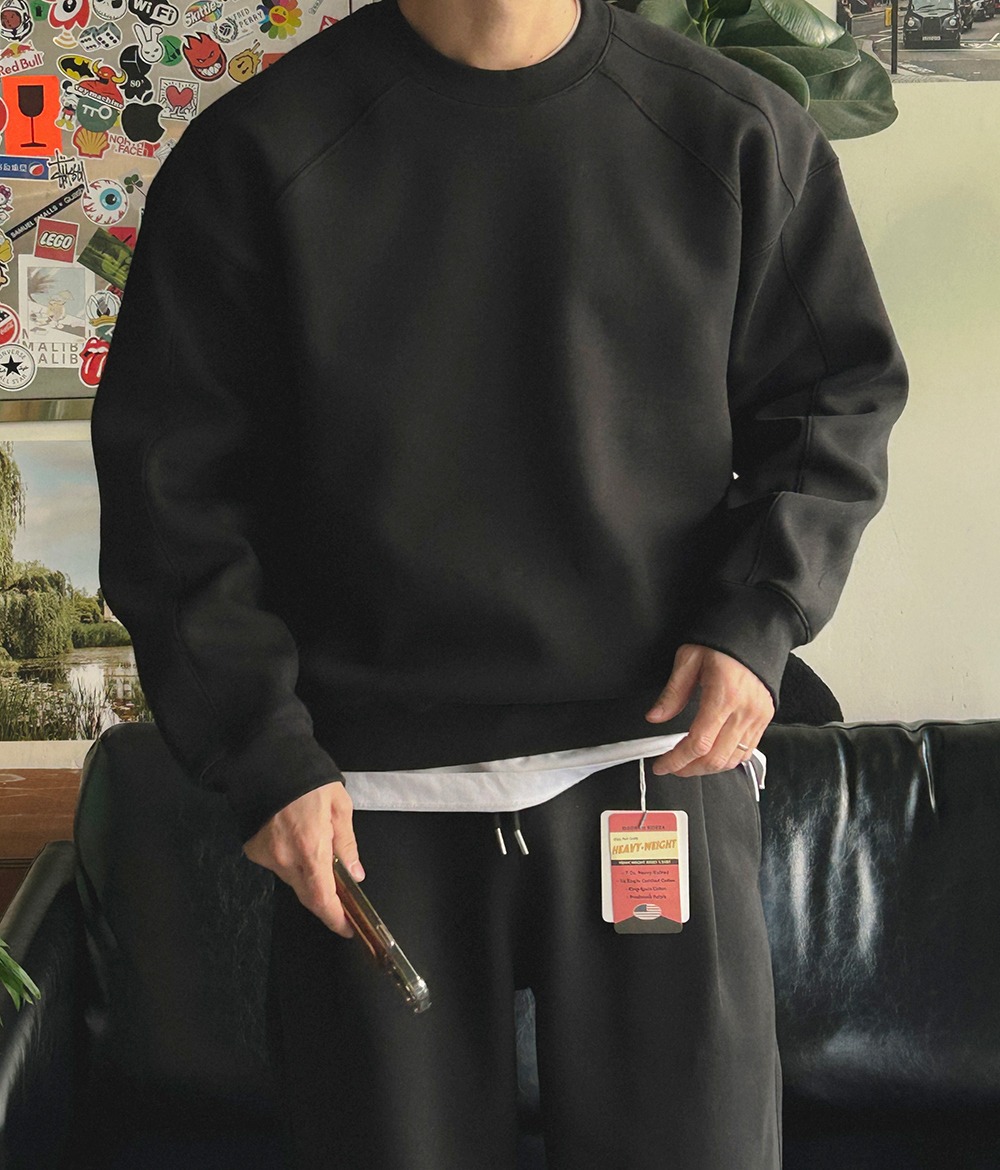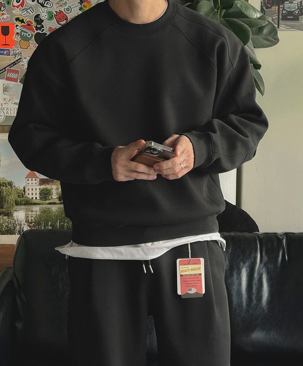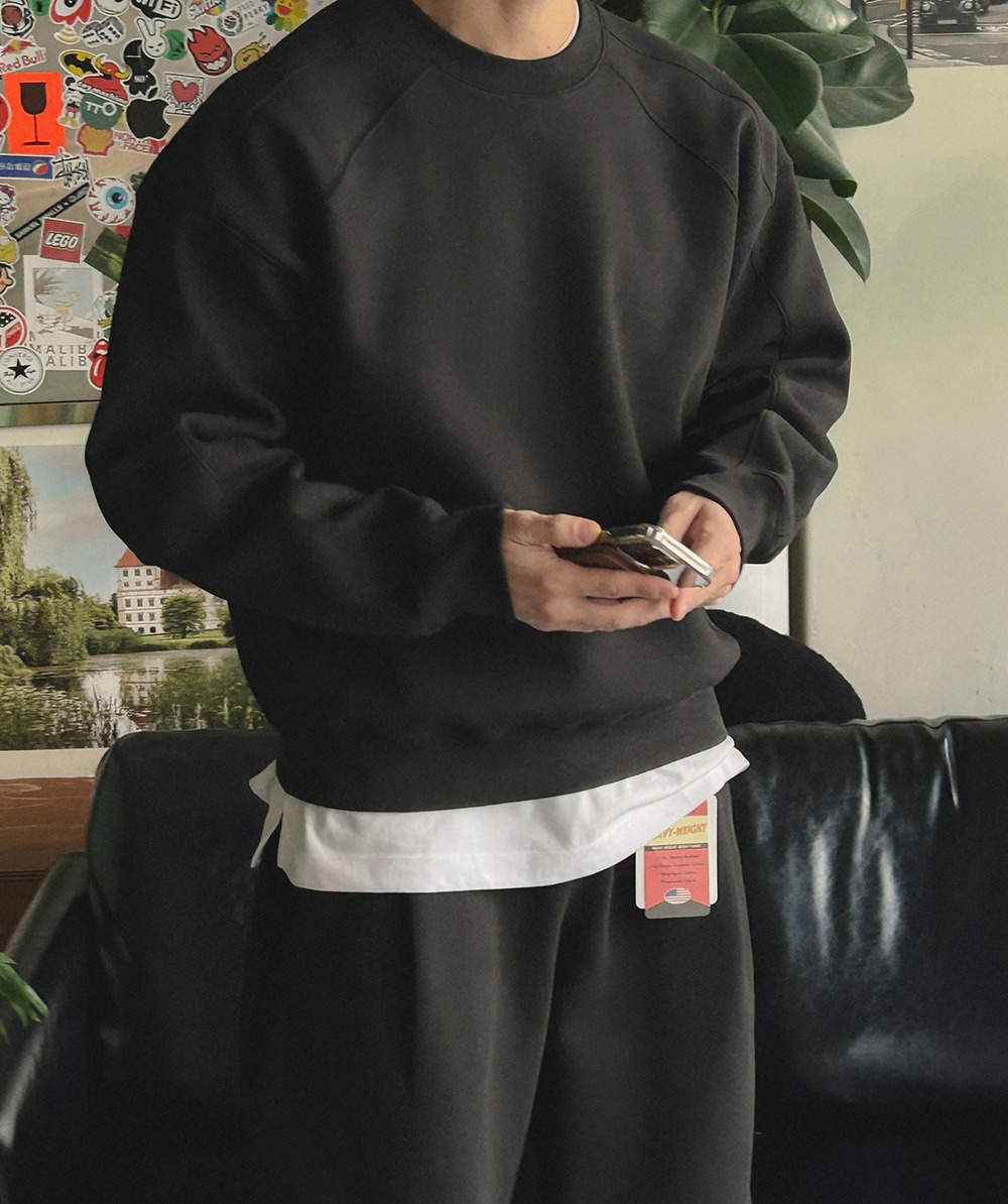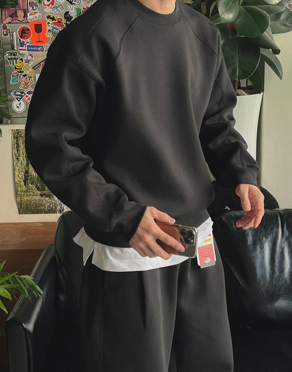 厚實美國棉肩線剪裁內抓絨長袖衛衣 4色 0105
