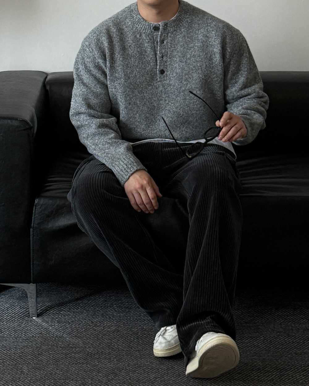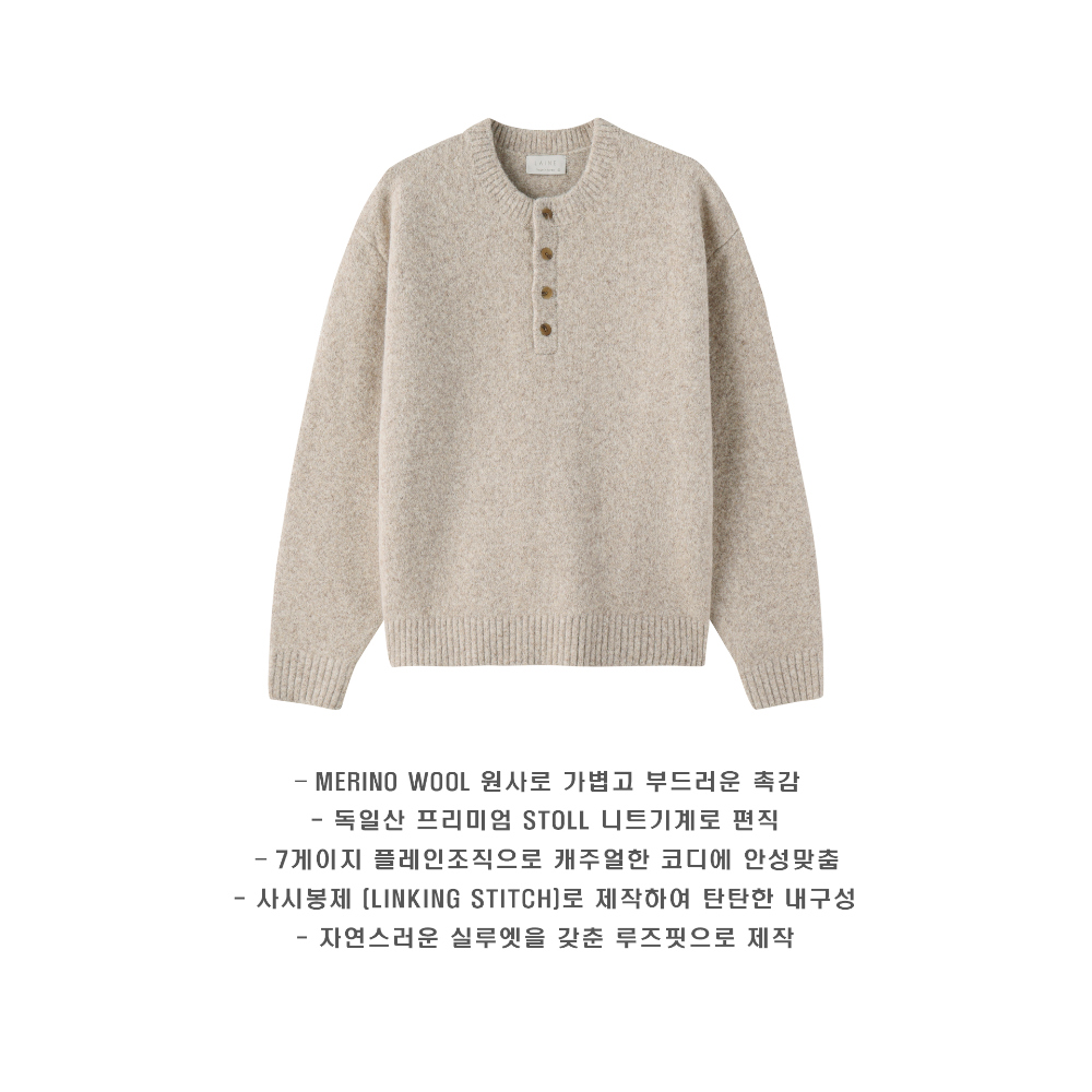 簡約美麗諾羊毛柔軟亨利領針織上衣 9色 1208