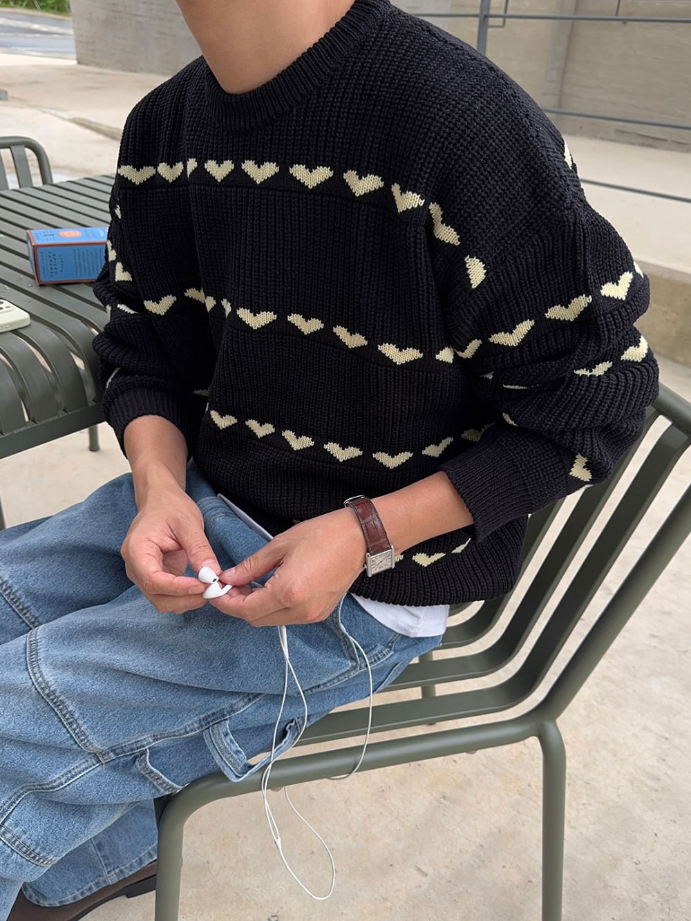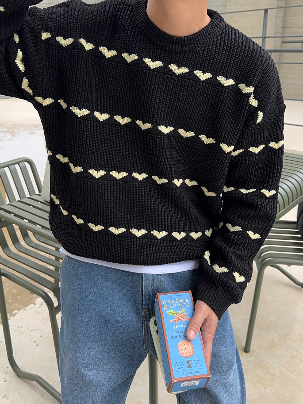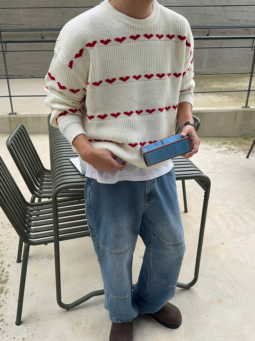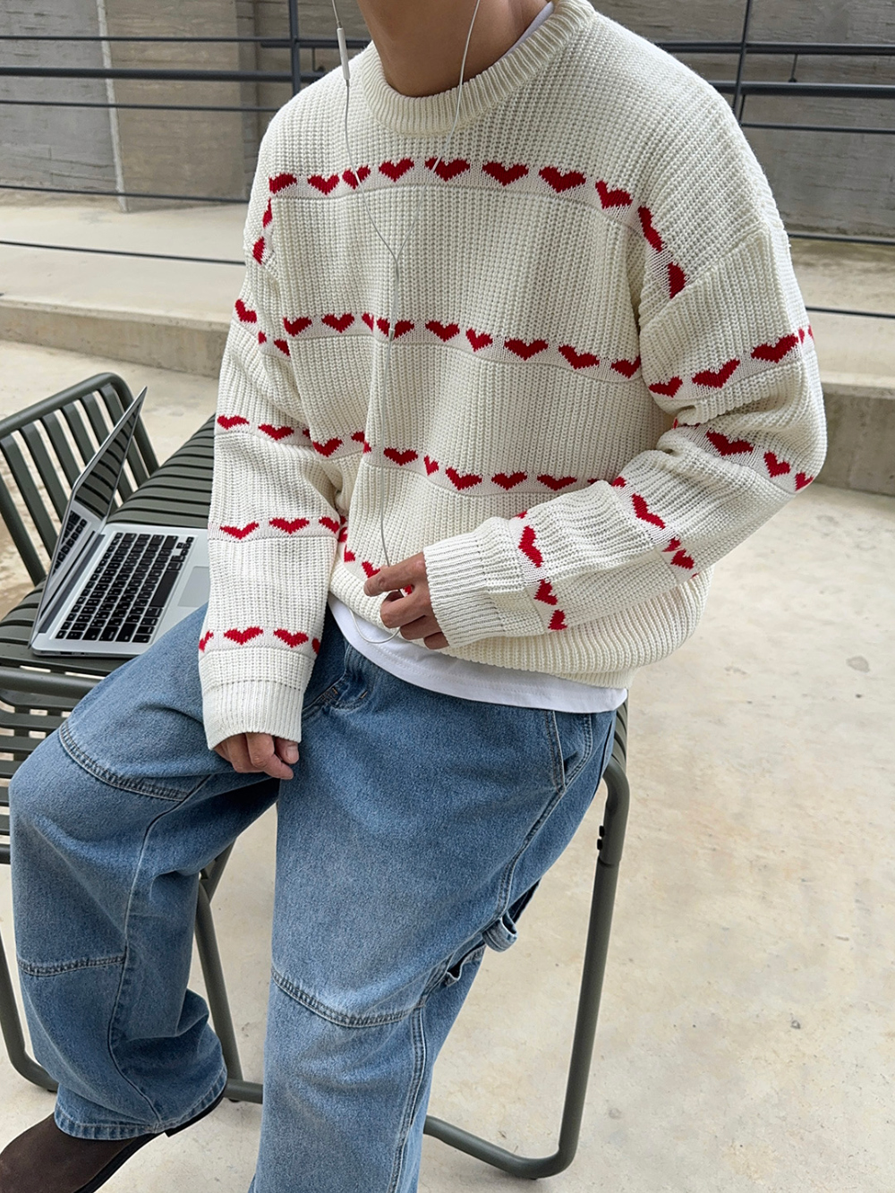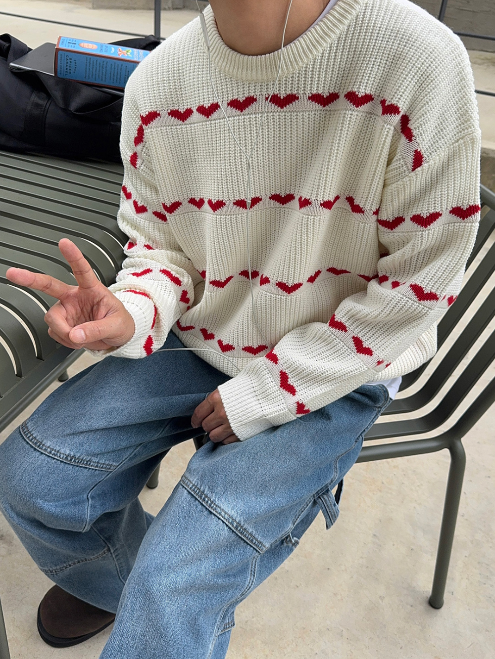 X'mas 撞色愛心橫條紋圓領針織上衣 2色 1208