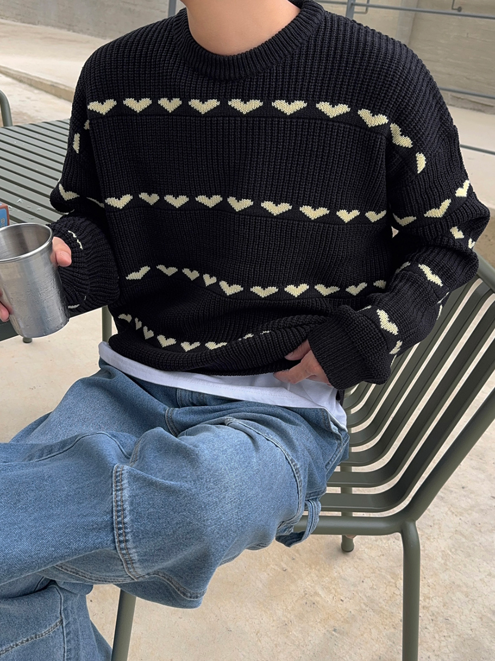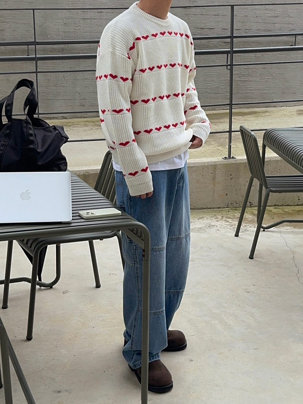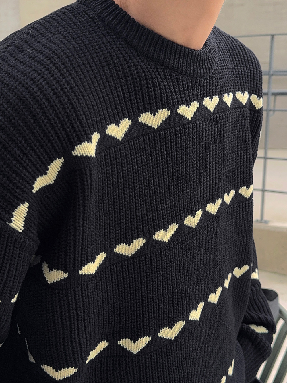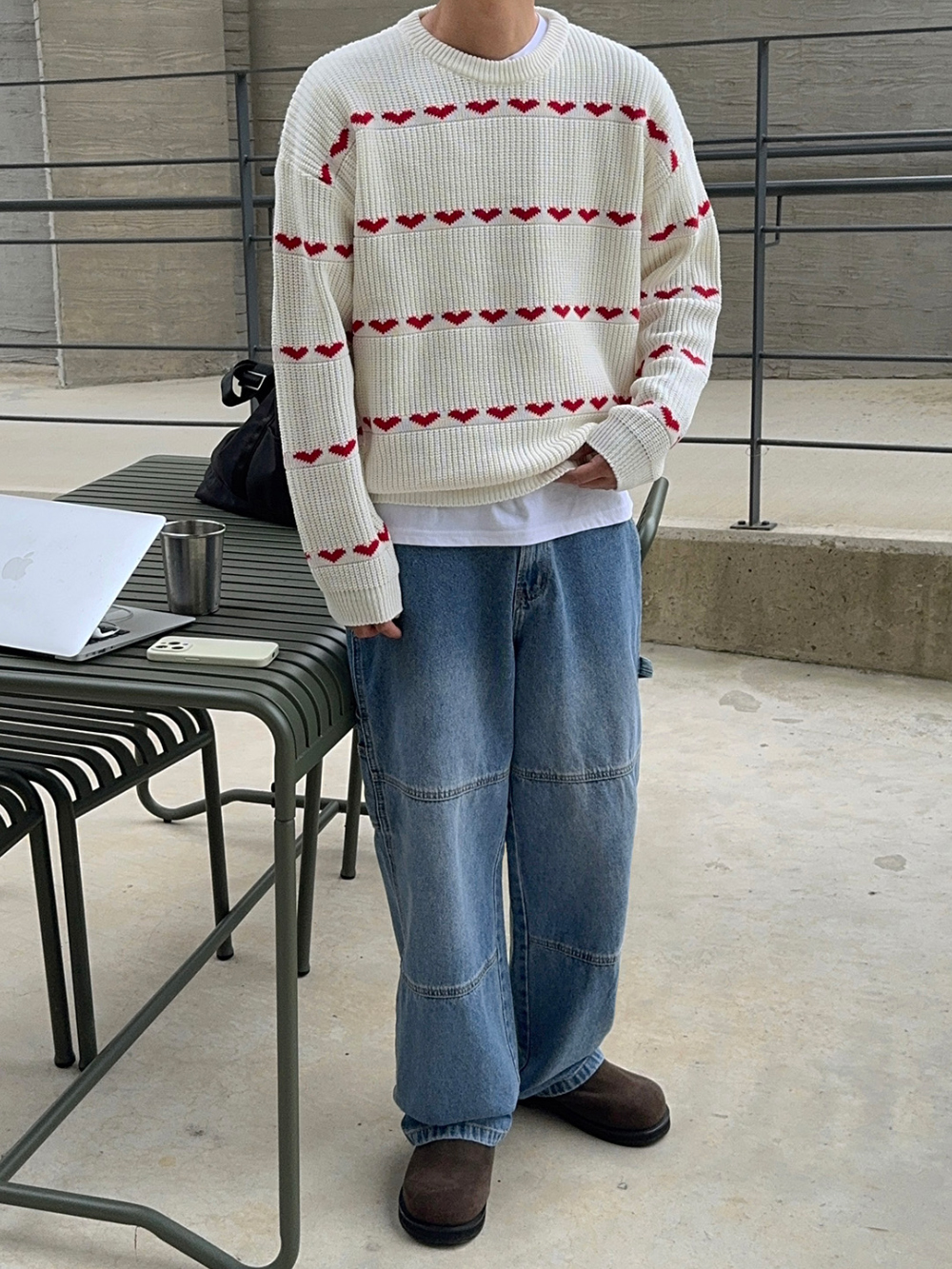 X'mas 撞色愛心橫條紋圓領針織上衣 2色 1208