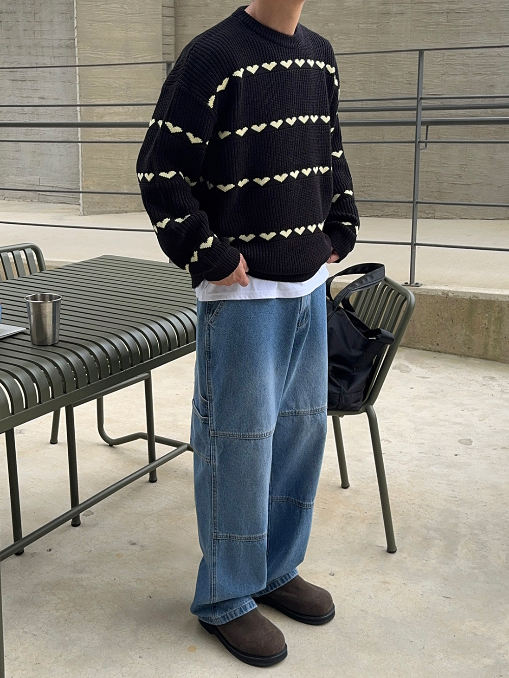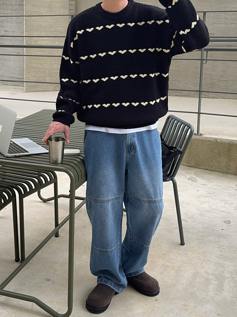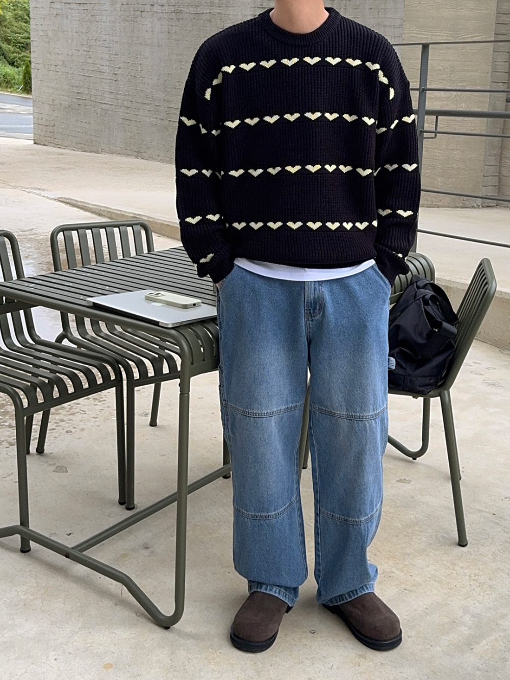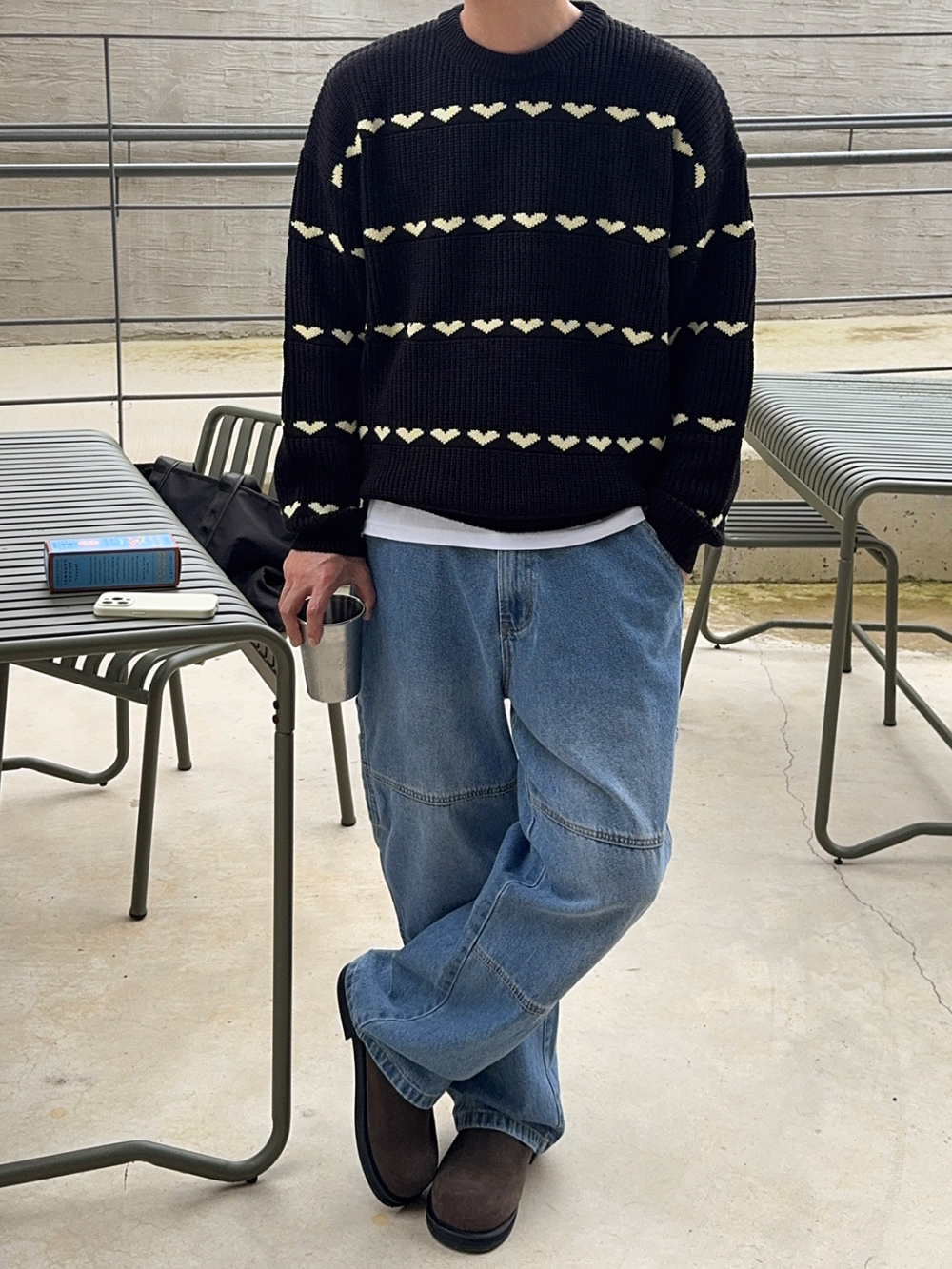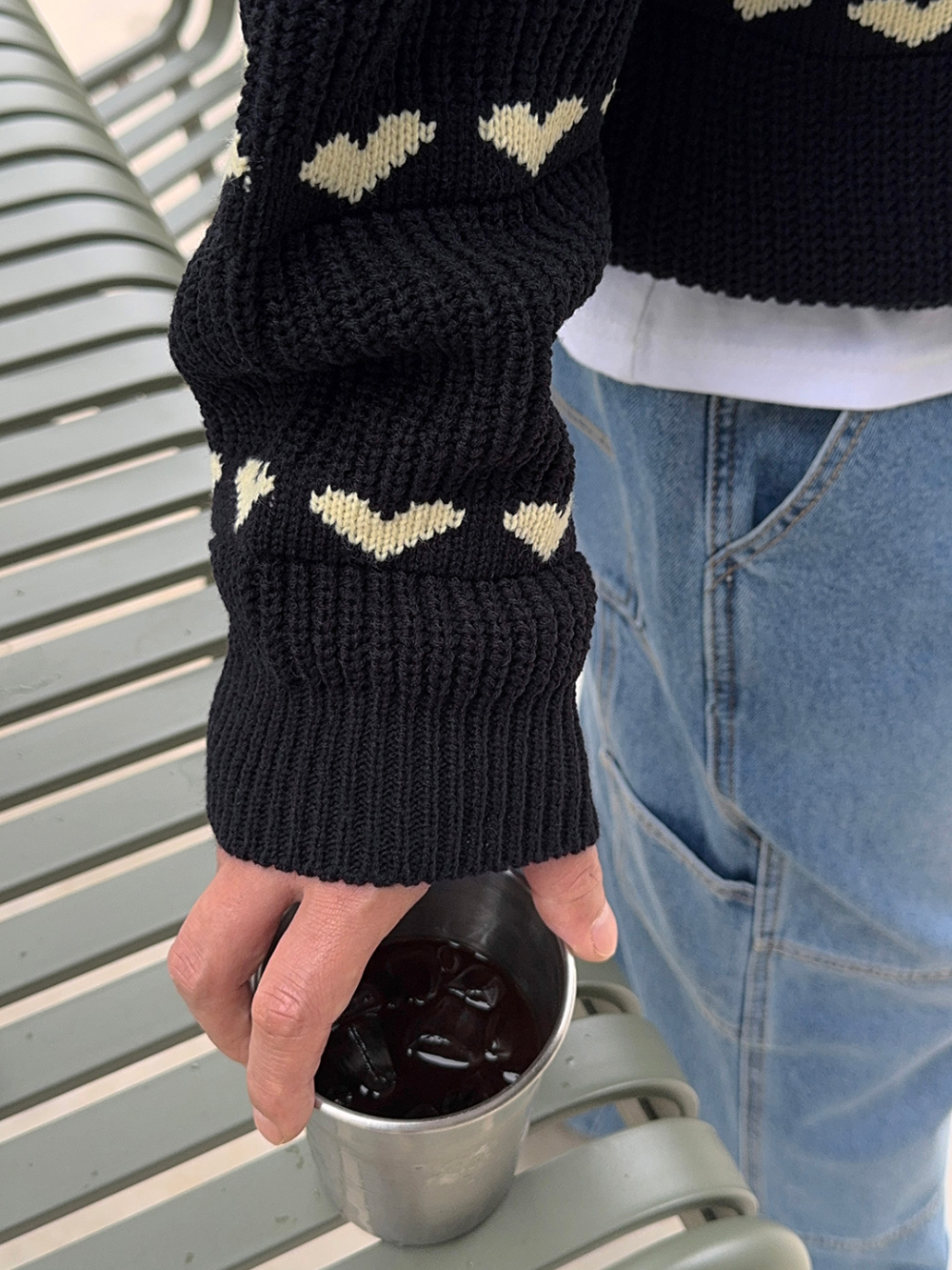 X'mas 撞色愛心橫條紋圓領針織上衣 2色 1208