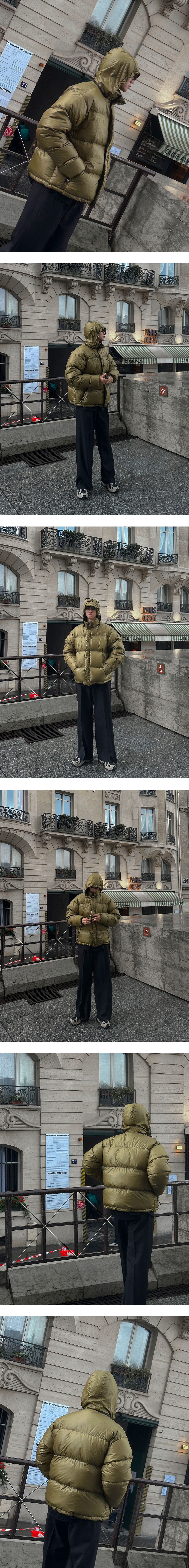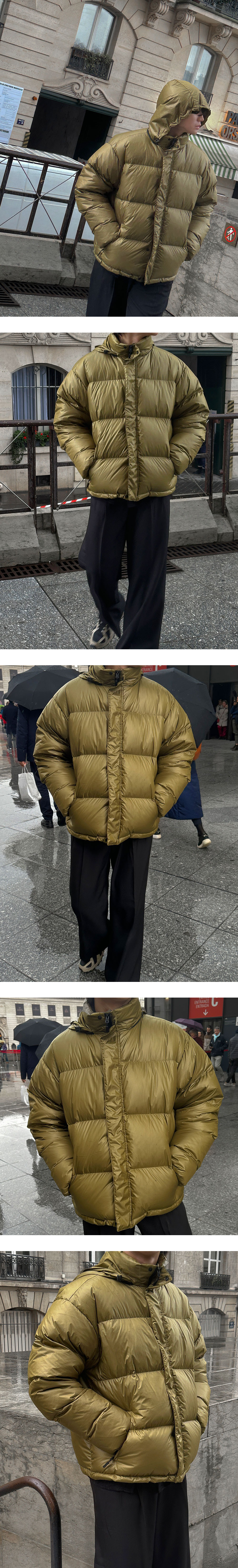 低調光澤尼龍立領連帽羽絨外套 4色 0105