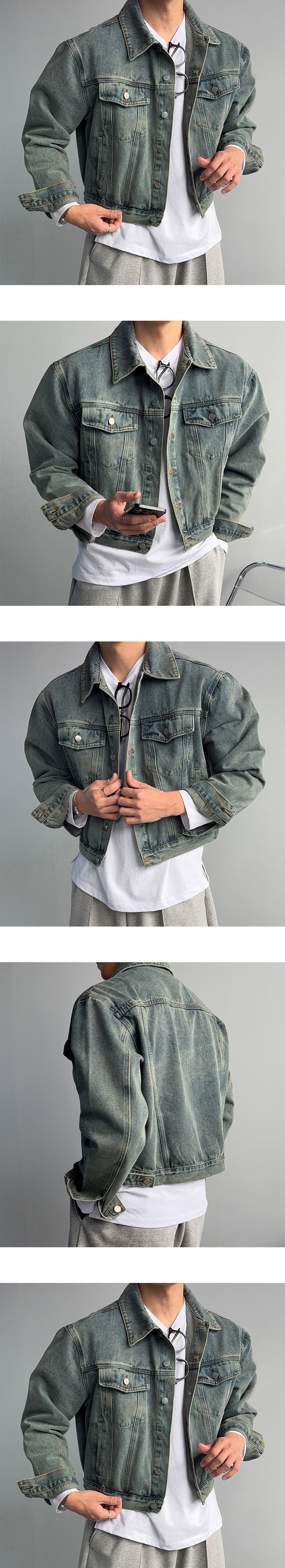復古修身短款水洗雙口袋牛仔夾克 4色 0316