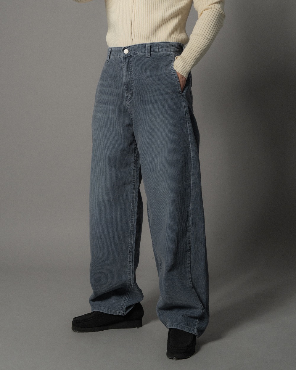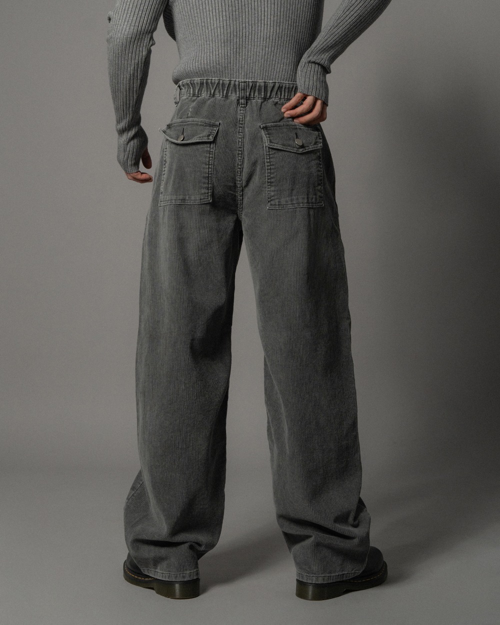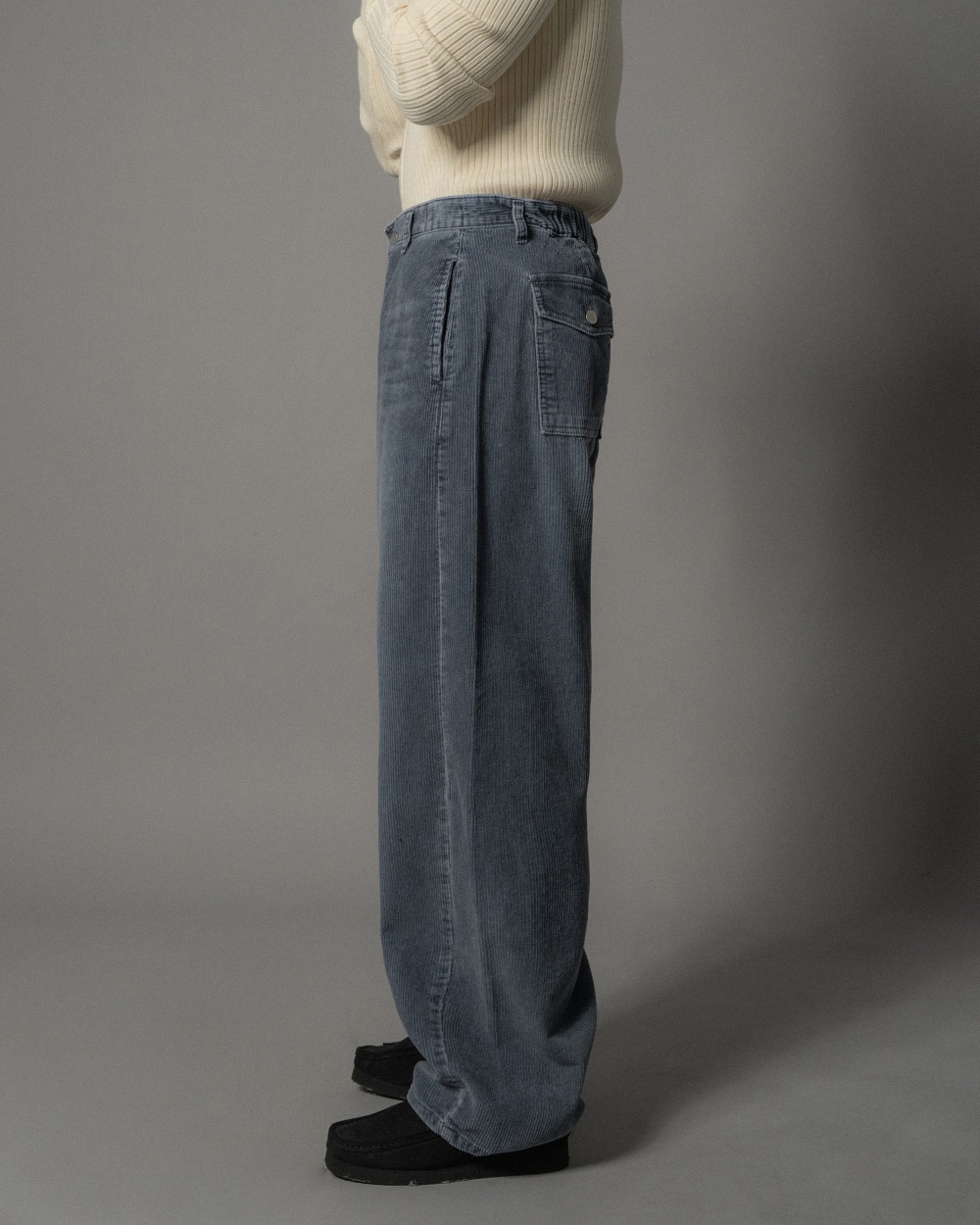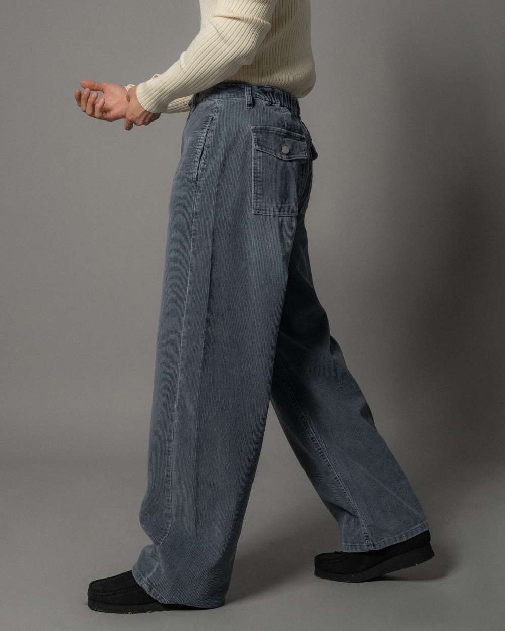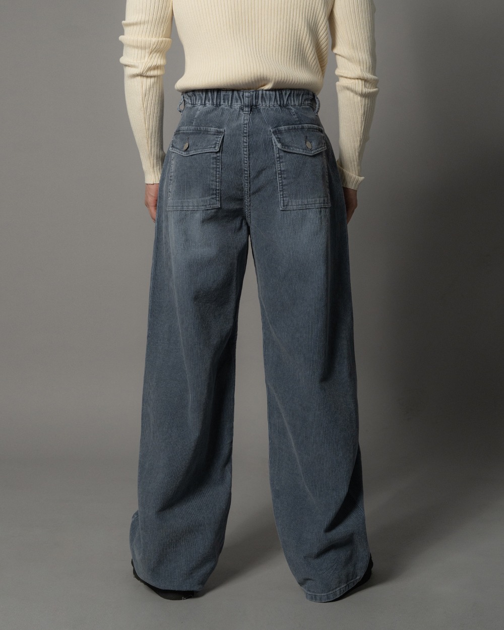 質感牛仔燈芯絨水洗刷色後鬆緊寬褲 2色 1124
